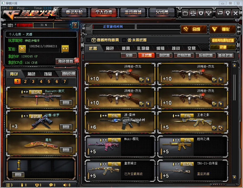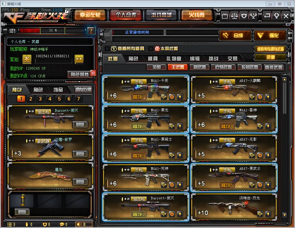 【主 枪】:王者之影、千变、火麒麟、雷神(万化包)、烈龙x5、黑骑士、黑龙、无影、黑武士、死神、毁灭、白羊座、苍雷、征服者、乱世