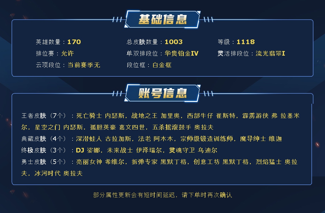 皮肤太多只截了部分图------------下单前查下游戏ID,确保段位是您所需要的,注意账号是否允许排位,避免浪费您的时间~