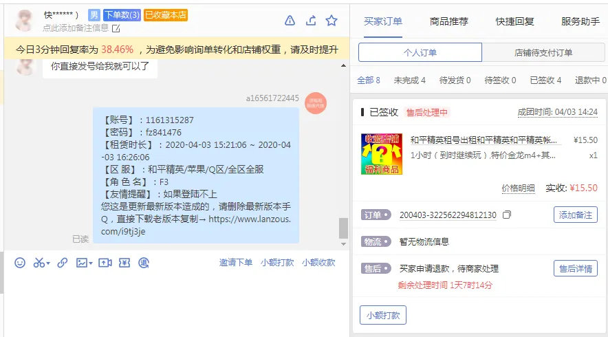 租赁押金:500元(不得使用外挂等第三方软件,违反将会扣除押金)