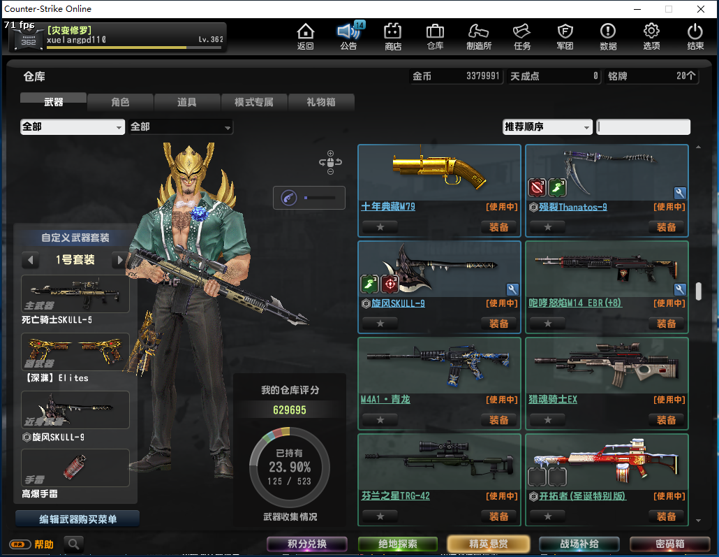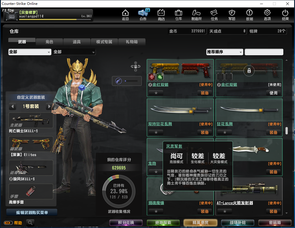 CSOL玩号死亡骑士套/青龙套/炫彩M4 /加特林等爆破+僵尸玩