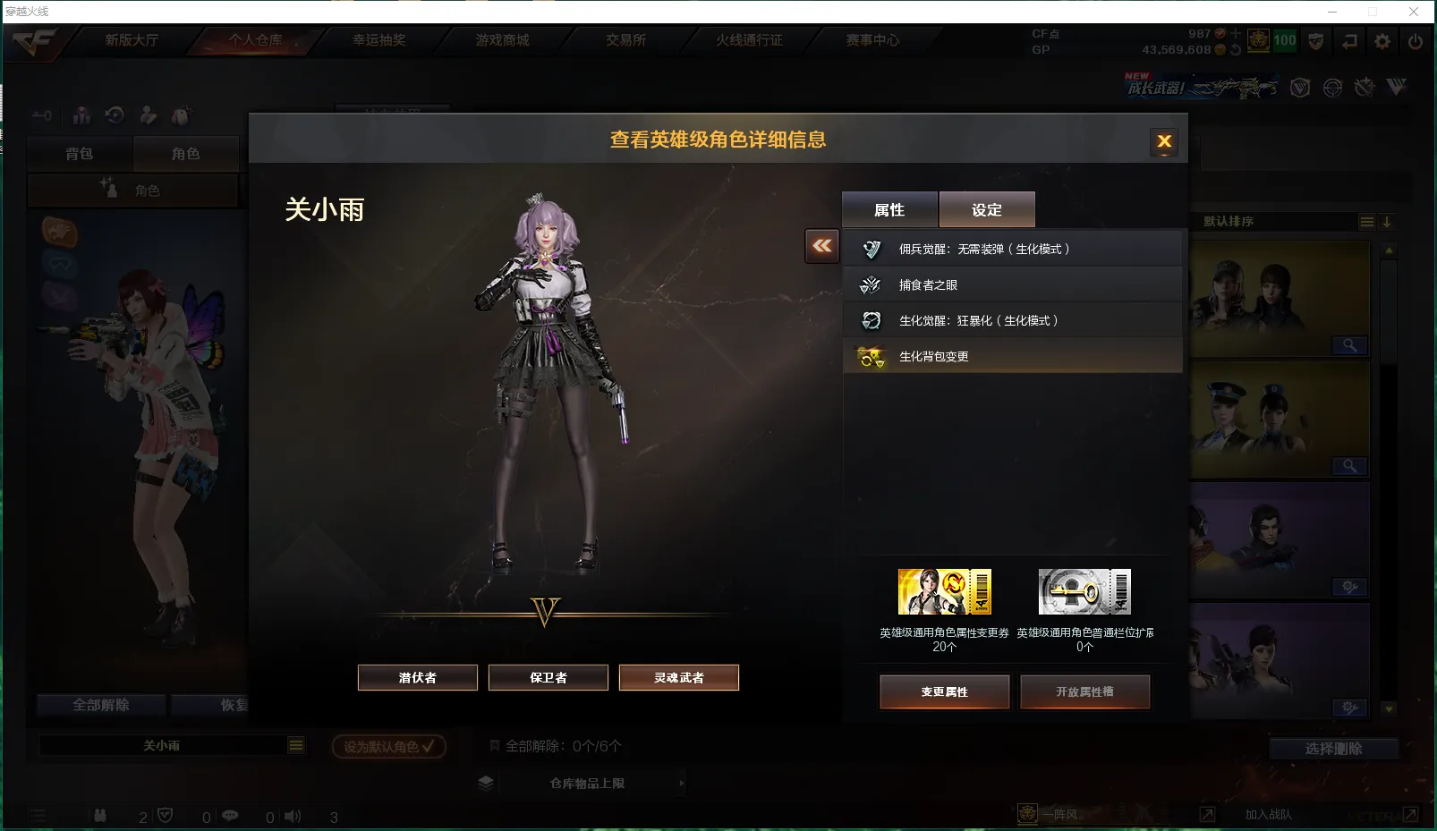 关小雨(佣兵觉醒:无需装弹、生化觉醒:狂暴化、捕食者之眼、生化背包变更)、