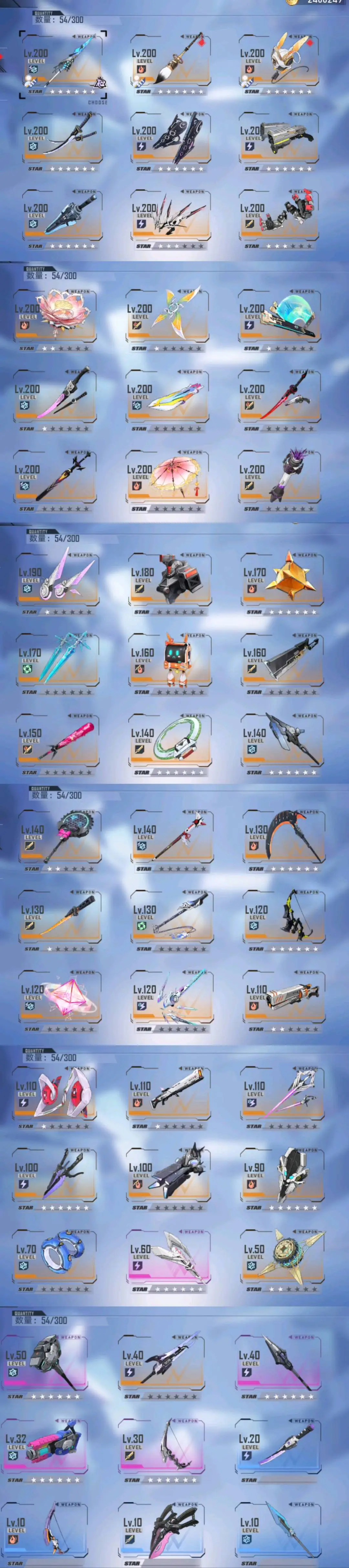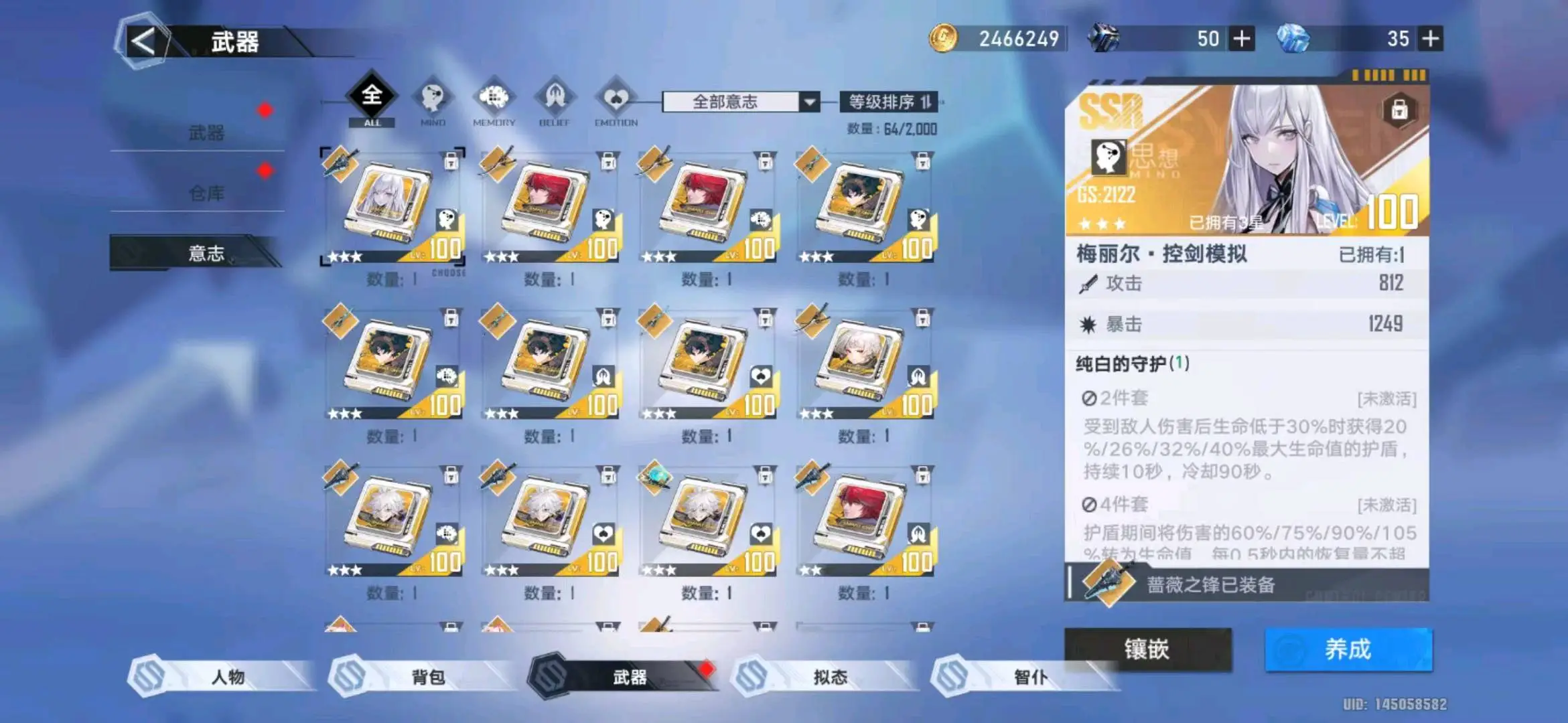 ♥总90个SSR武器、20个满级200级武器,50个满级SSR意志