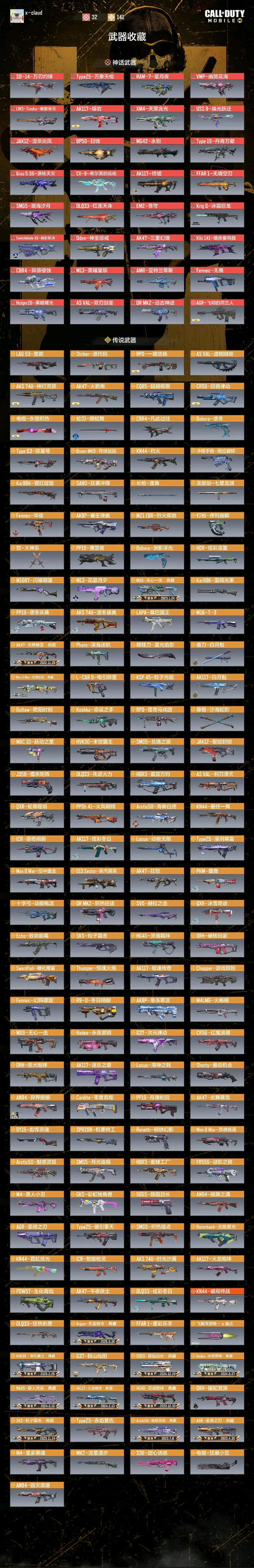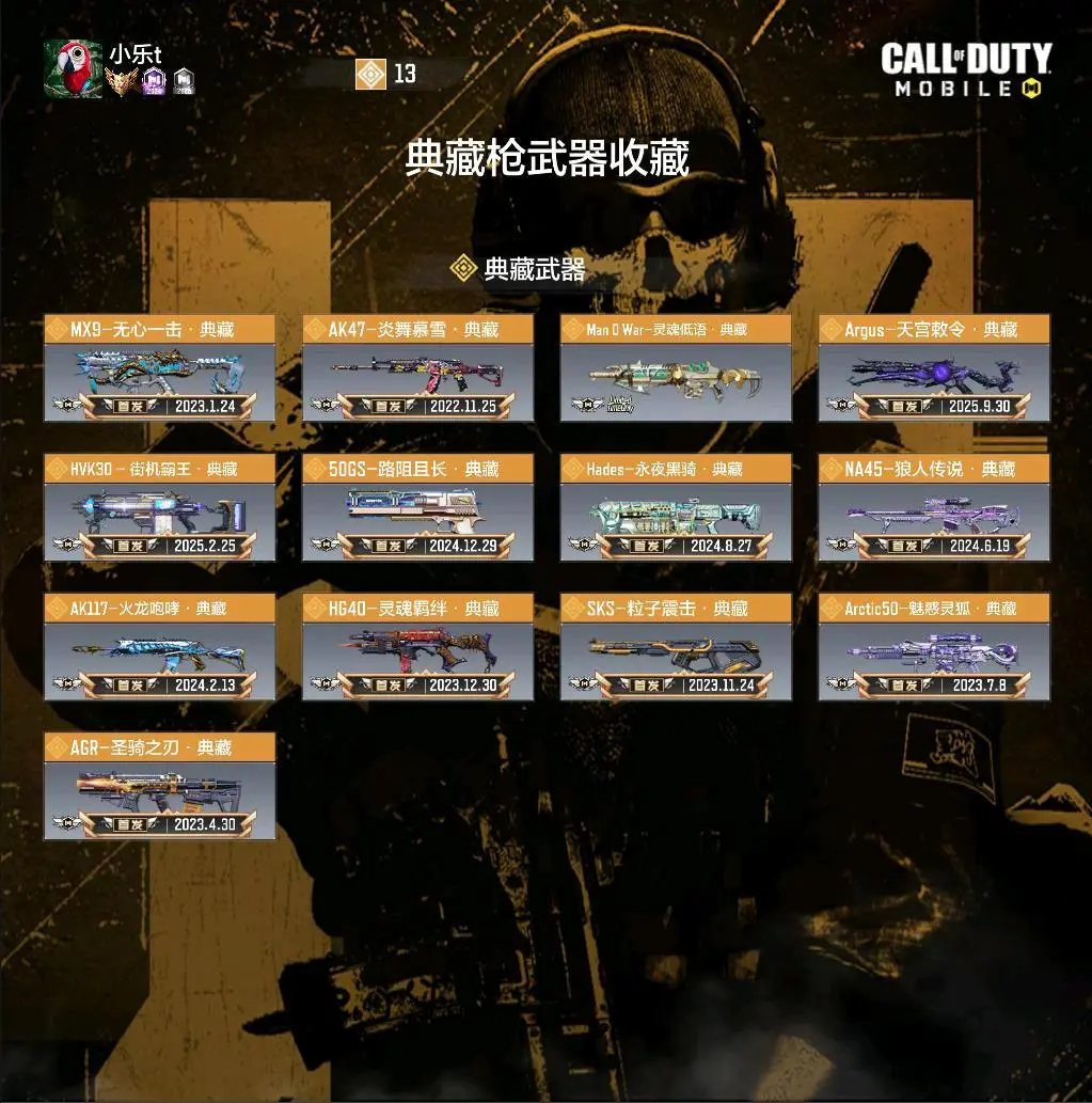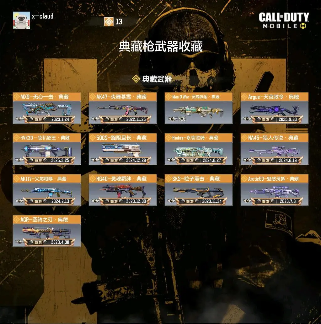 Man 0 War-灵魂低语·典藏✅AK47-炎舞慕雪·典藏✅MX9-无心一击·典藏✅AGR-圣骑之刃·典藏✅SKS-粒子震击·典藏✅Arctic50-魅惑灵狐·典藏✅HG40-灵魂羁绊·典藏✅AK117-火龙咆哮·典藏