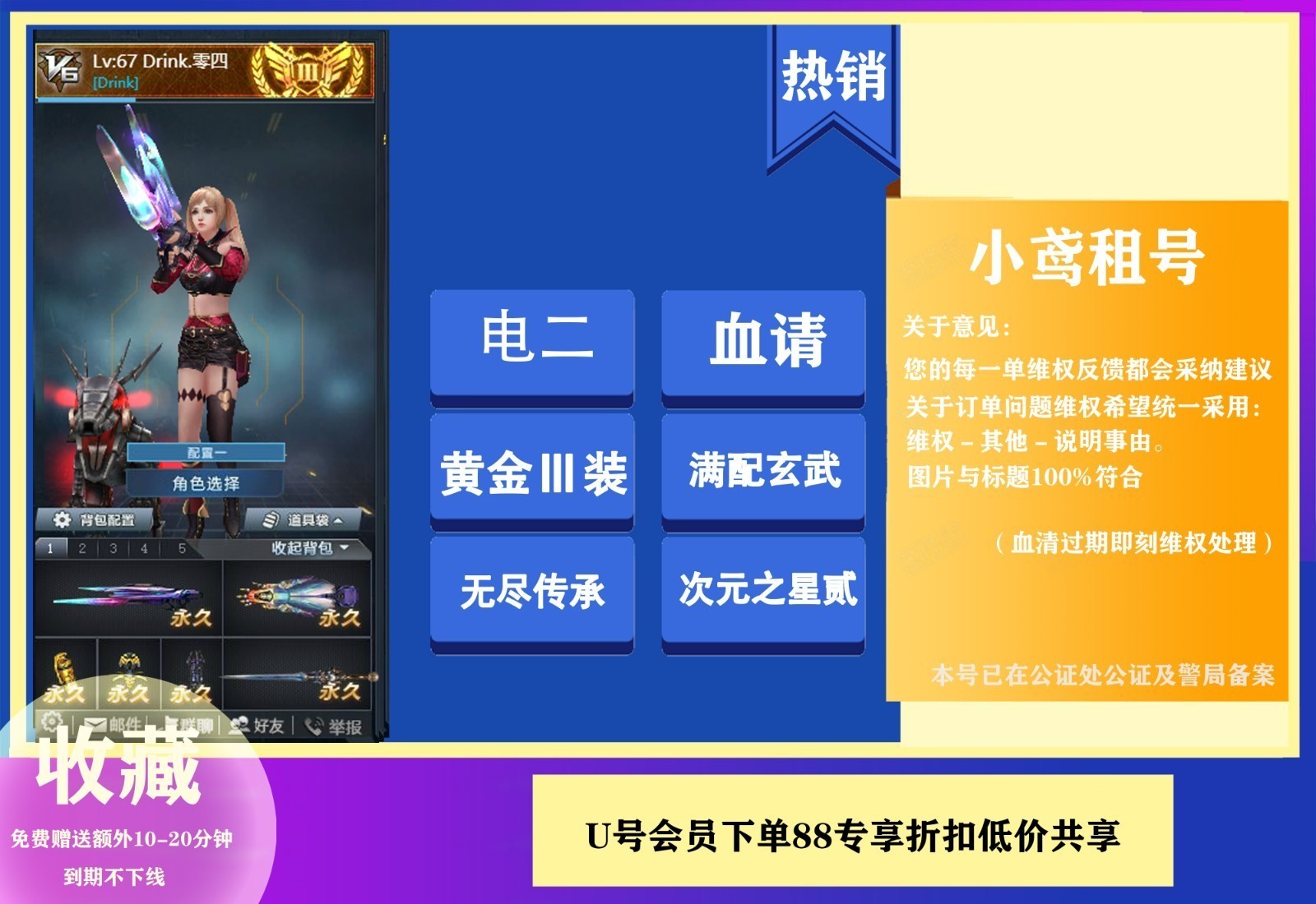 🎀【小鸢租号】🎀极品+次元贰3传说屠魔旅人灰核连城!次元之星贰霓虹满配玄武!无尽传承灵狩无限GT