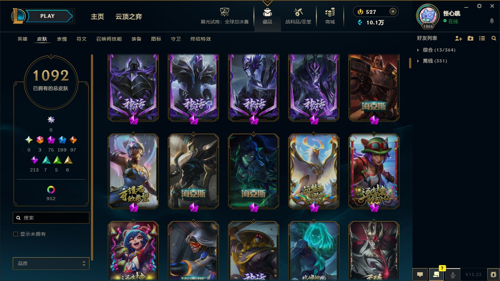 - 神话皮肤数量: 75