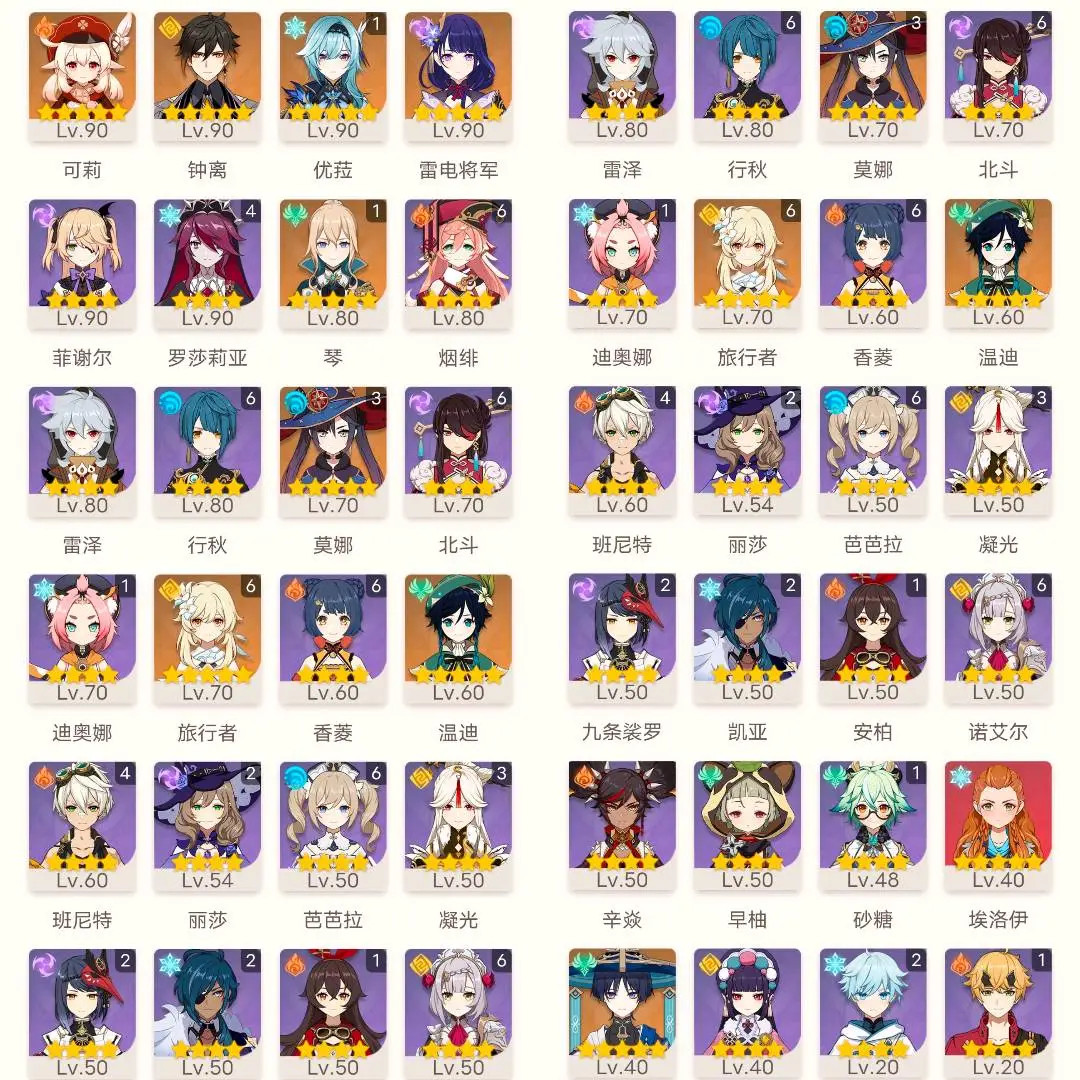 【全平台】 16黄 90一命尤拉 90钟离 90可莉 90雷神 流浪者 温迪 满命香菱 满命北斗 满命芭芭拉等