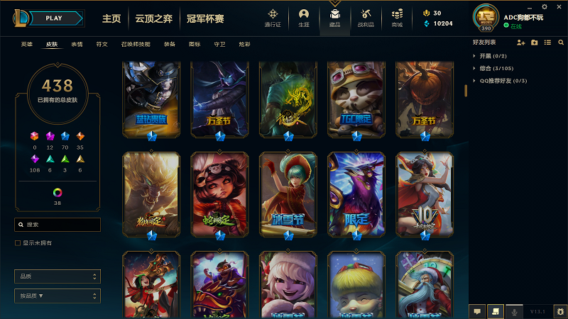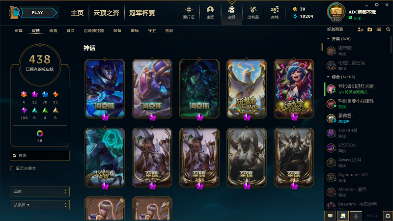 【可排位】全英雄430皮肤,龙瞎,摄魂薇恩,至臻卡莎,至臻剑魔等,可排位