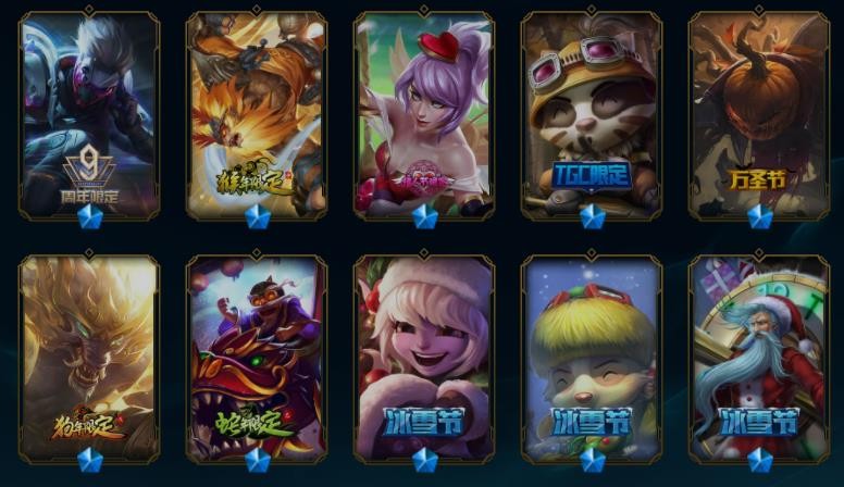 【407原皮肤】电玩阿狸、猴年猴子、猴年女警、创星之灵璐璐、福牛守护者佛耶戈、冰雪节剑圣、冠军之隐、冠军之箭、至臻灵魂莲华剑圣易、至臻福牛守护者剑姬、周年灵能特工剑圣易、马年广寒仙子嫦娥皎月、安妮梦游仙境、狗年北辰之威狗头、狗年南天之怒狼人、狗年春晖神女光辉拉克丝、周年电玩女神阿狸、龙年定海神珍猴子孙悟空、猴年美猴王猴子孙悟空、猴年玉净夜叉女警、蛇年神龙之翼飞机、花木兰、创星之灵璐璐、牛年福牛守护者佛耶戈、冰雪节剑圣、冠军之箭艾希、冠军之隐劫、惊悚派对稻草人、情人节觅心之翼奎因、情人节甜心之翎洛、万圣节人马、勇者豹女、勇者阿狸、御星魔矢寒冰艾希、暗星锤石、黑夜使者亚索、星之守护者阿狸、弹幕天使卡莎、黑潮皎月、未来战士卡牌、西部魔影人马、小蜜蜂提莫、星之守护者奶妈、腥红之月剑圣易、玉剑传说剑圣、战场BOSS亚索、赵云