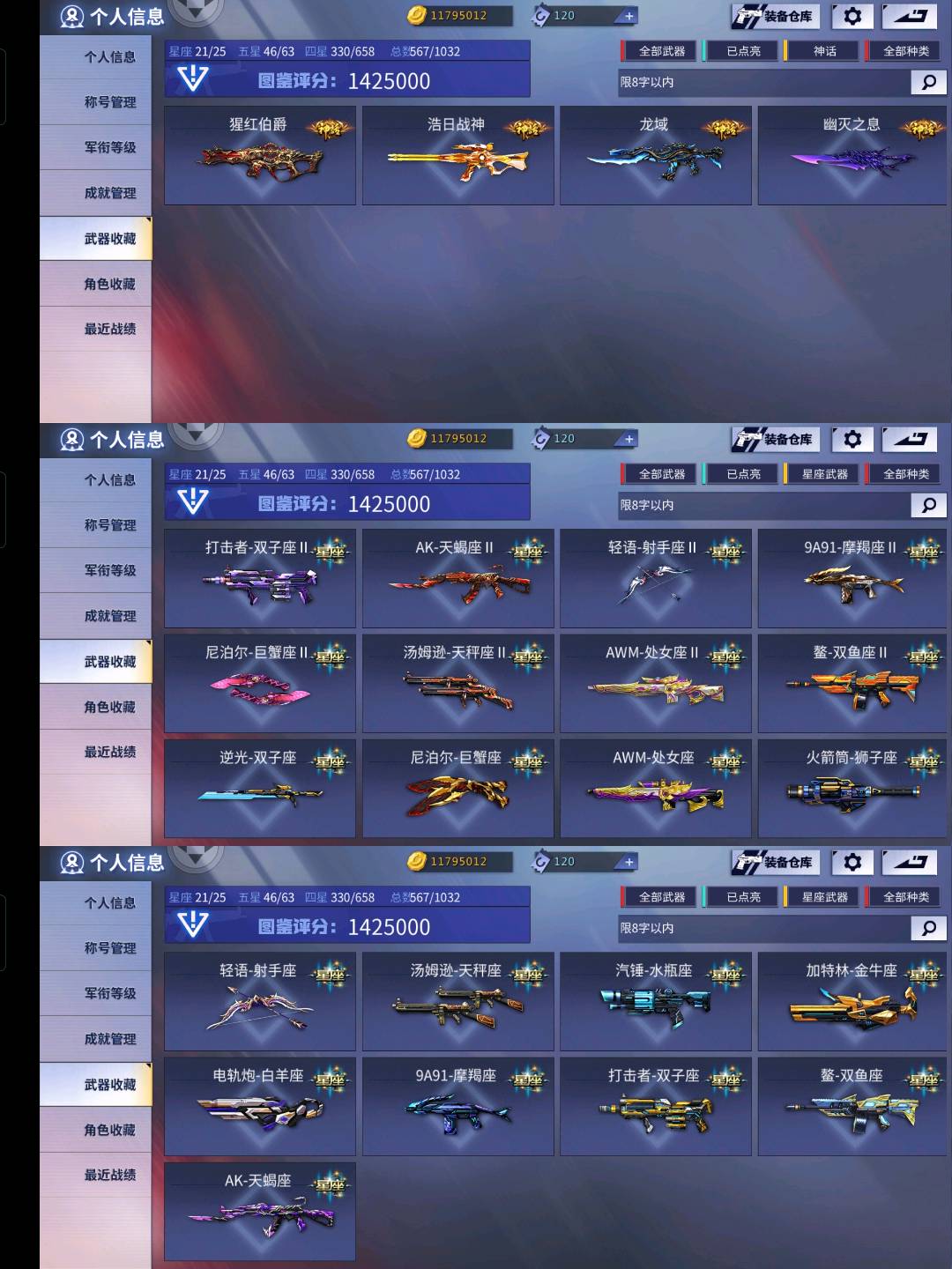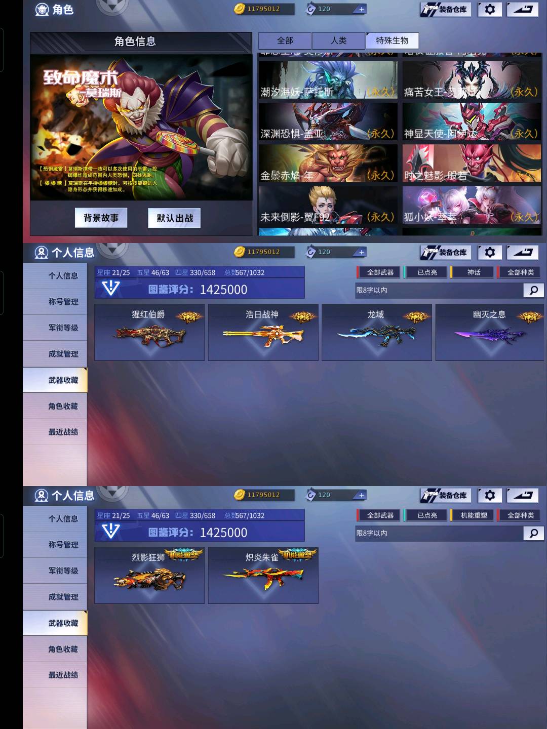 全星座🌟多套装🌟多英雄满配🌟穹宇全套🌟浩日战神🌟炽炎朱雀🌟猩红伯爵4神话⚡️⚡️⚡️以及大量角色包括李扎觉醒小绿人镭龙