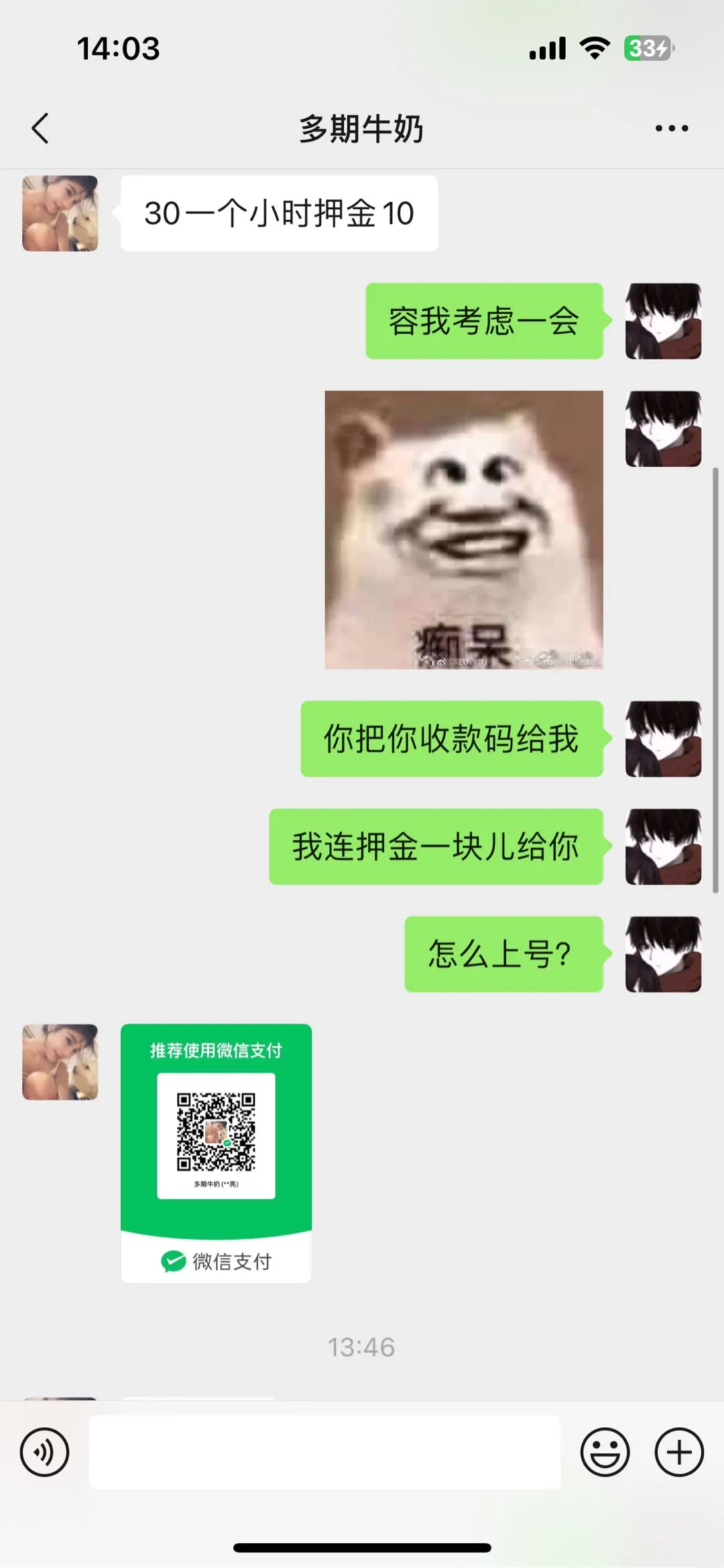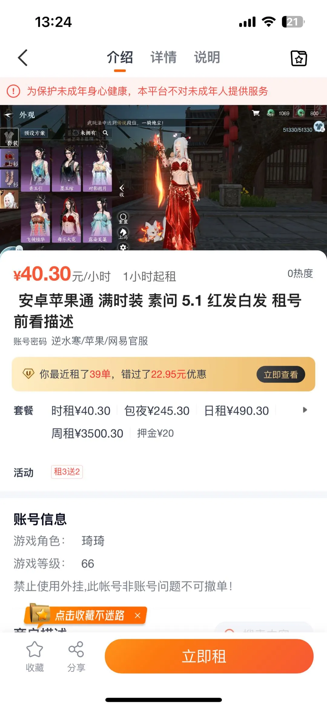 【苹果】 避雷喜欢租逆水寒的千万别去租,她以前的V信名字叫多期牛奶你找他租的话他会找你要40有10块钱是押金
