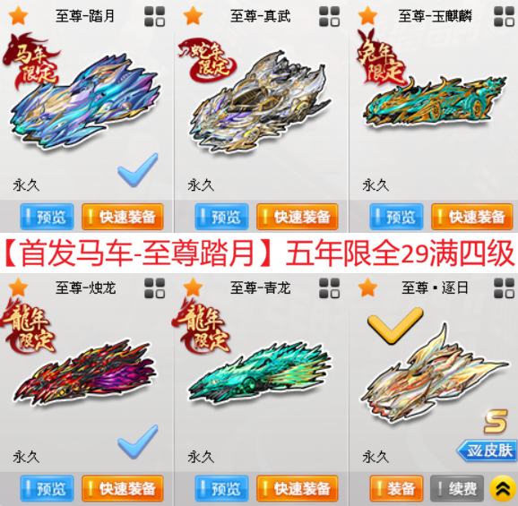 五年限【至尊踏月❤️至尊真武❤️至尊玉麒麟❤️至尊烛龙❤️至尊青龙】29神屠龙+屠龙逍遥奥丁刘备
