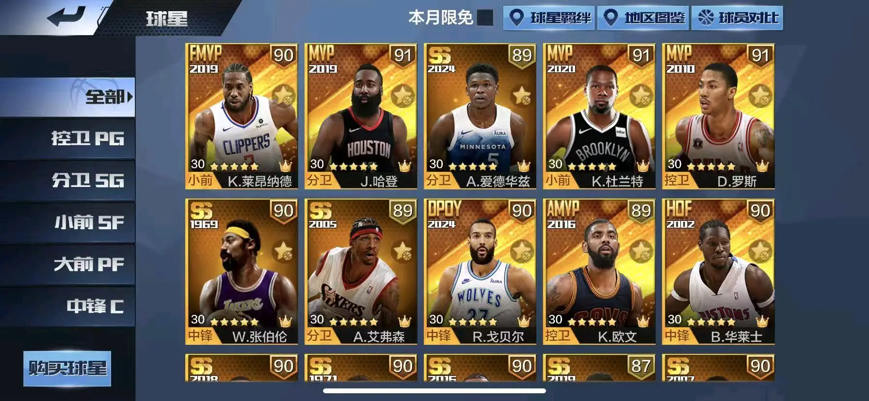 【苹果】 51★全是汗啊★挂机罚分力度增大★可排位★天选哈登罗斯网杜大本华子戈贝尔全力詹艾弗森贾巴尔小卡