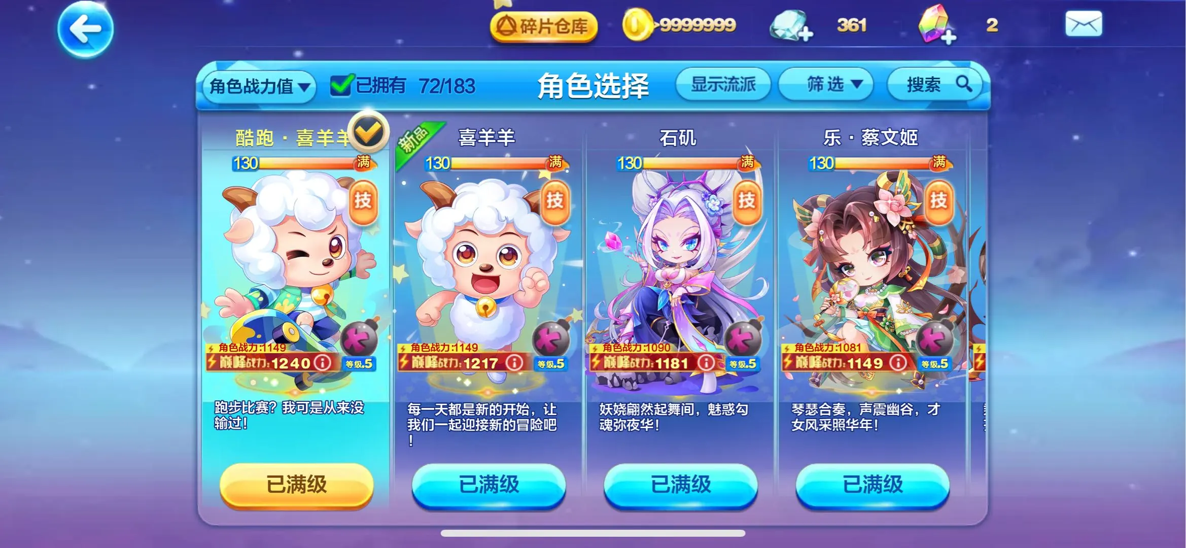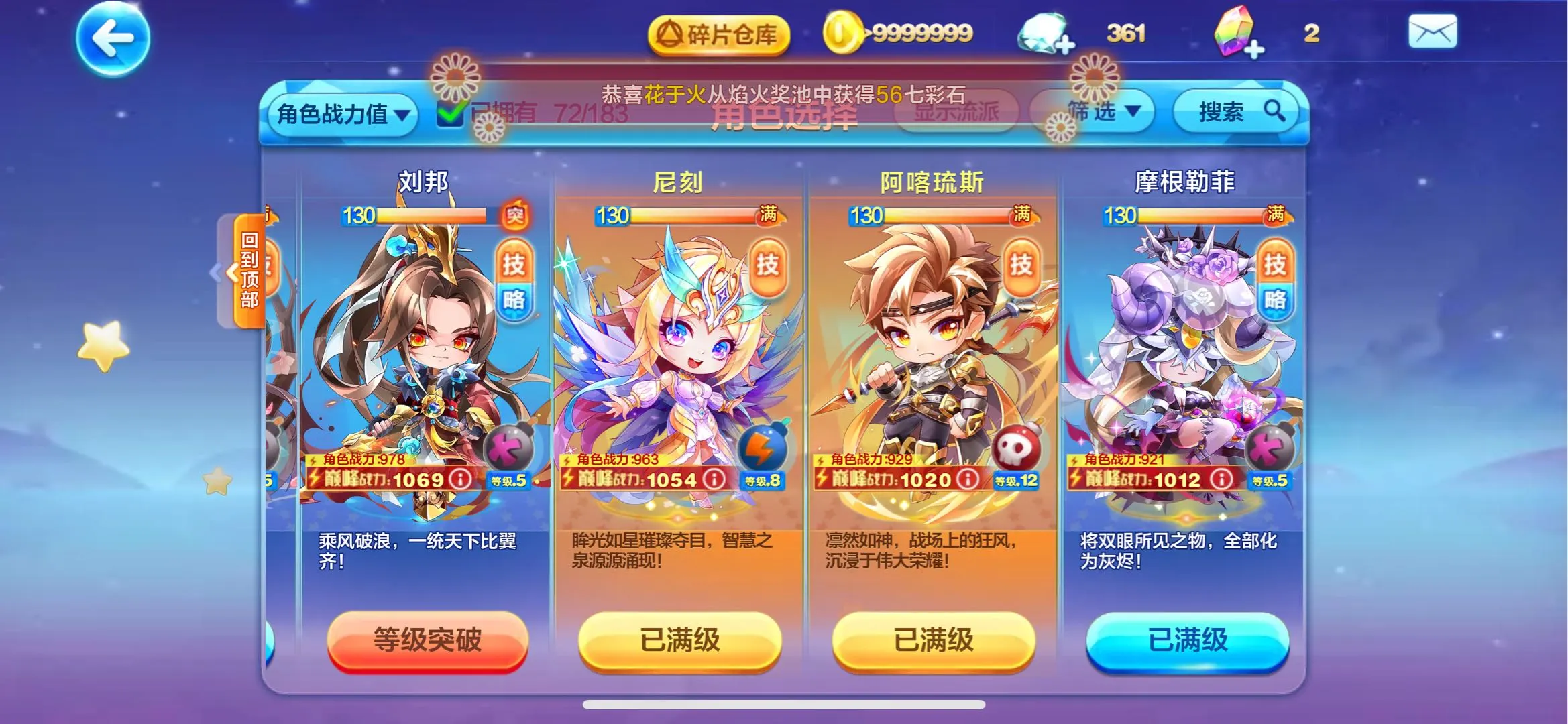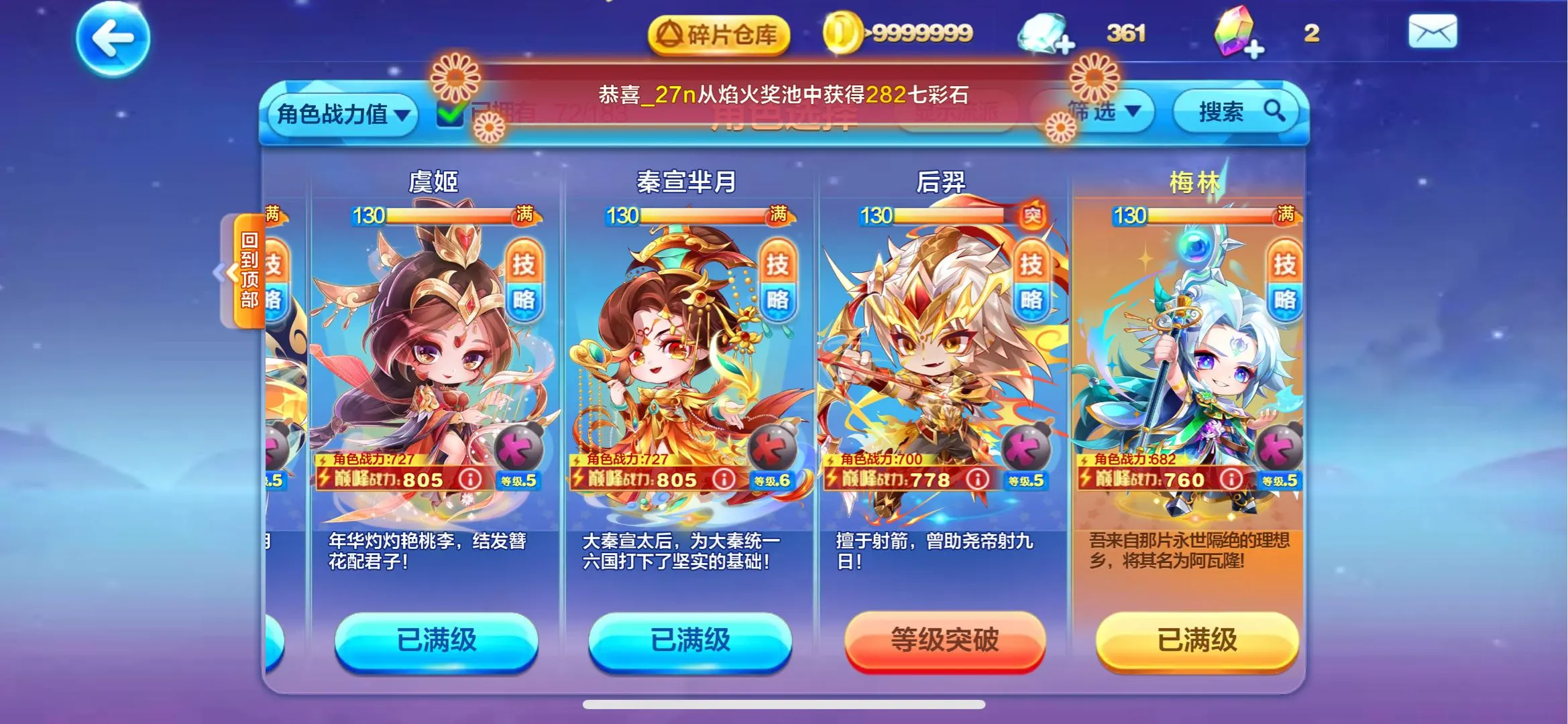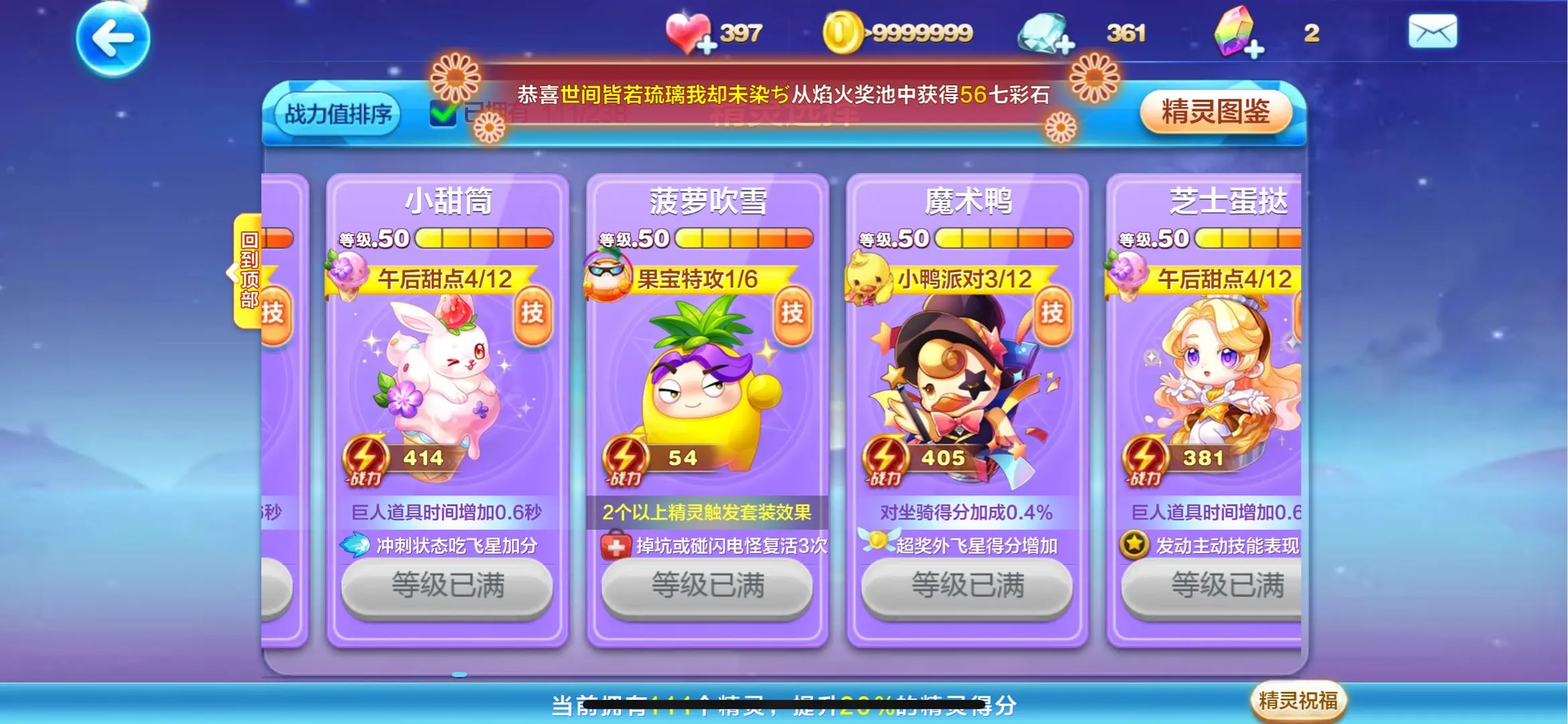 镜花月!石矶!九霄寒!喜羊羊!提亚马特!蔡文姬!尼刻!菠萝吹雪!阿周那!蛋蛋!大禹!胜利之神?穆桂英!水晶之梦!铃兰花语!寒冰龙王!沉香!撒旦!羲和!轩辕!财神!牛魔王!精卫!共工!阿修罗!阿波罗!!时空之神!辉夜!雷神索尔!祝融!ss神宠全满