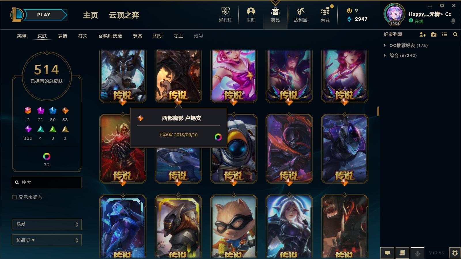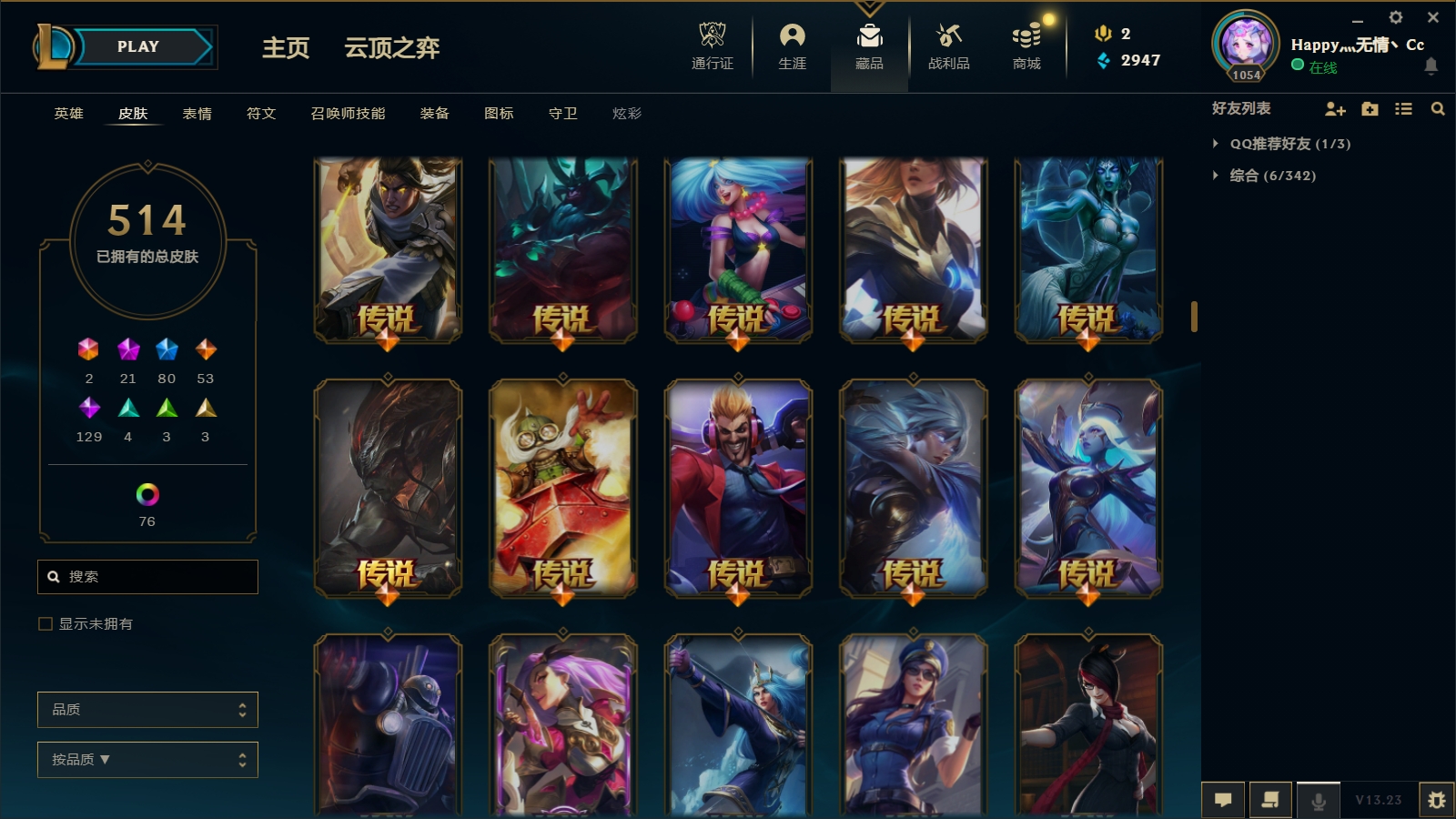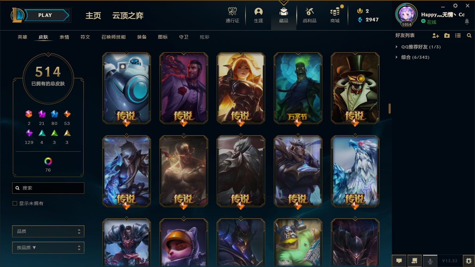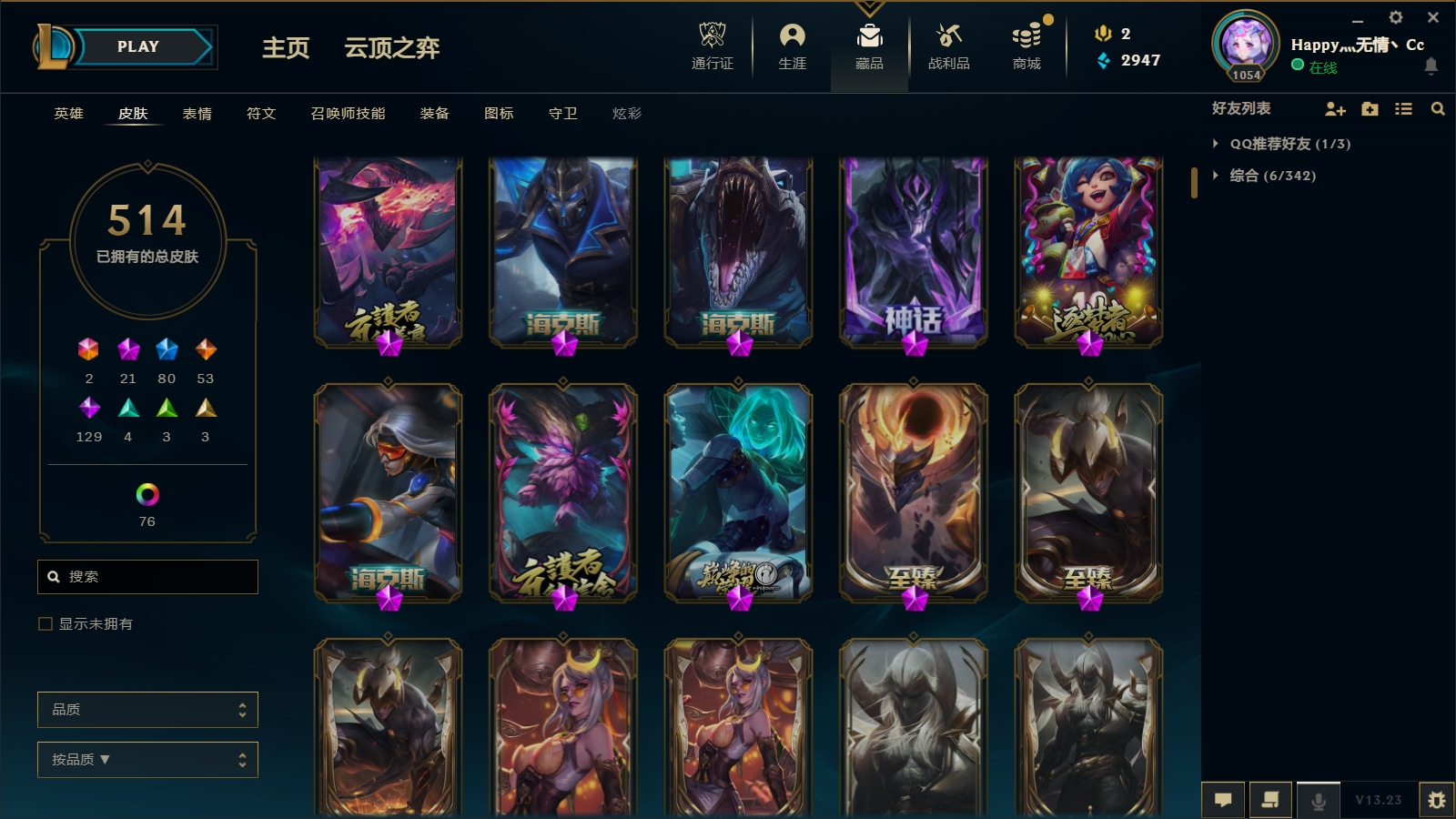 - 神话皮肤数量: 22