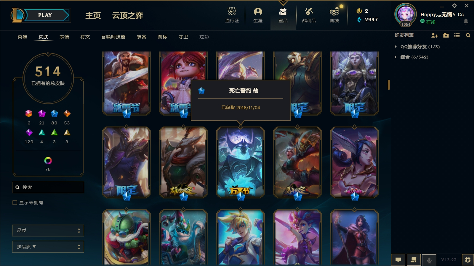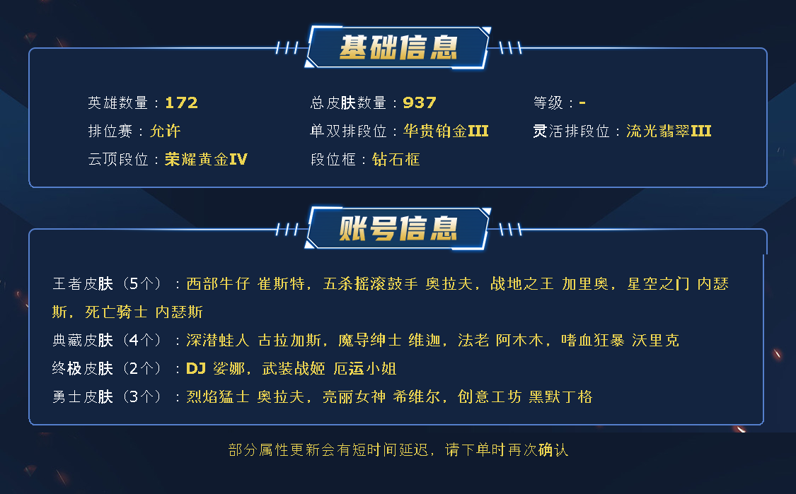 1000皮肤〓22至臻海克斯〓玉剑男女刀〓黑夜黎明神王套〓IG签名套〓西部魔影奥巴马
