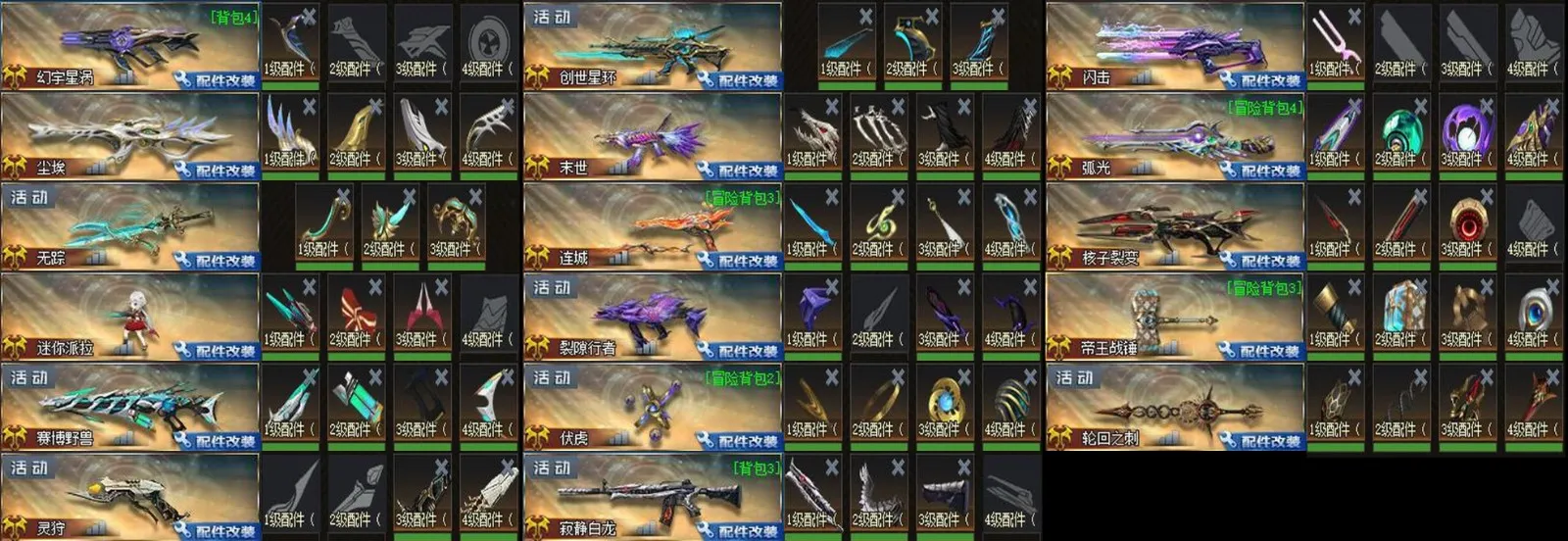 末世满配✅弧光满配✅无踪3配⭐连城满配✅核子裂变3配⭐迷你派拉3配⭐裂隙行者3配⭐伏虎满配✅轮回之刺满配✅塞博野兽满配✅灵狩2配⭐寂静白龙3配⭐狂暴之握2配⭐精彩配件武器欢迎体验✨