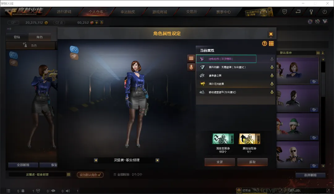 灵狐者-职业经理:(减少闪光,捕食者之眼,生化模式移动速度提升, 佣兵觉醒)终极猎手-幻影猎人