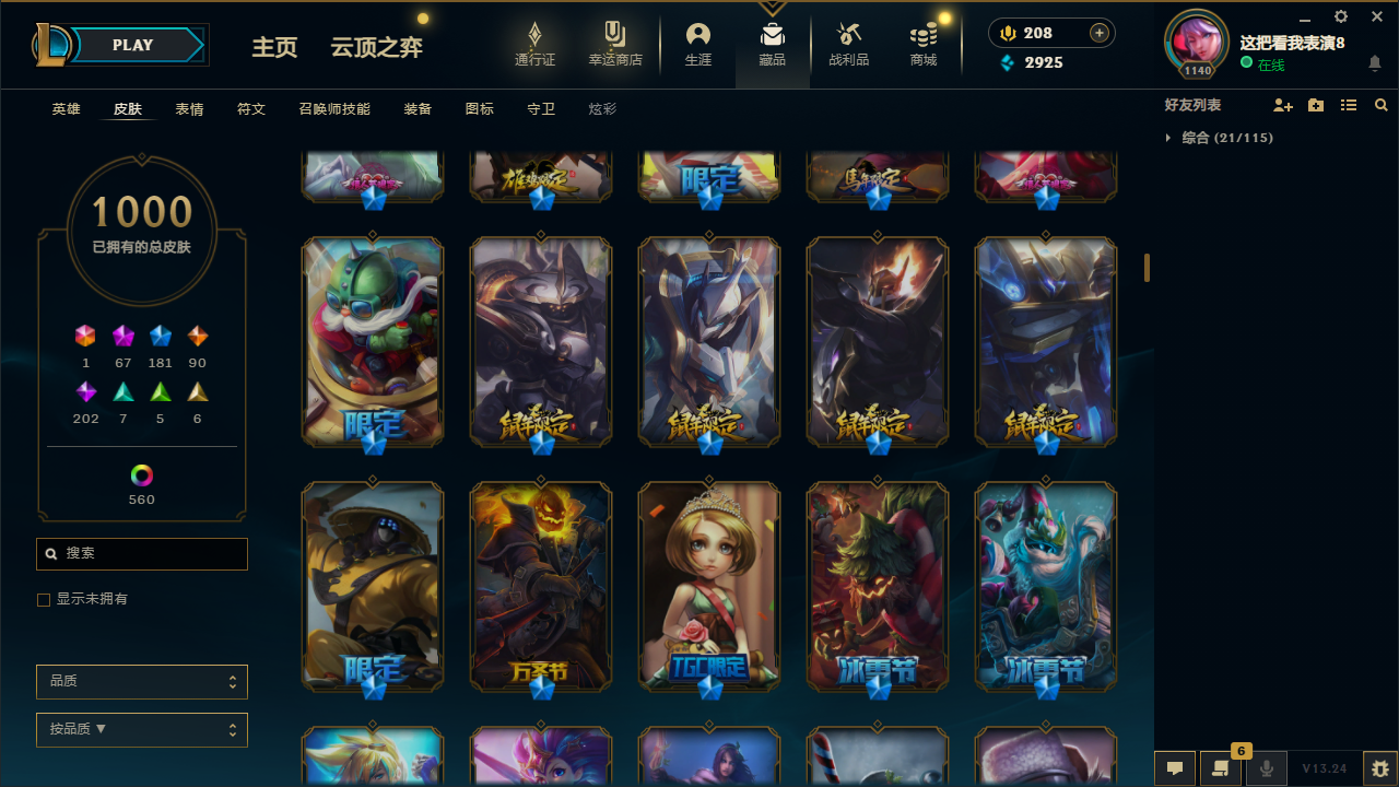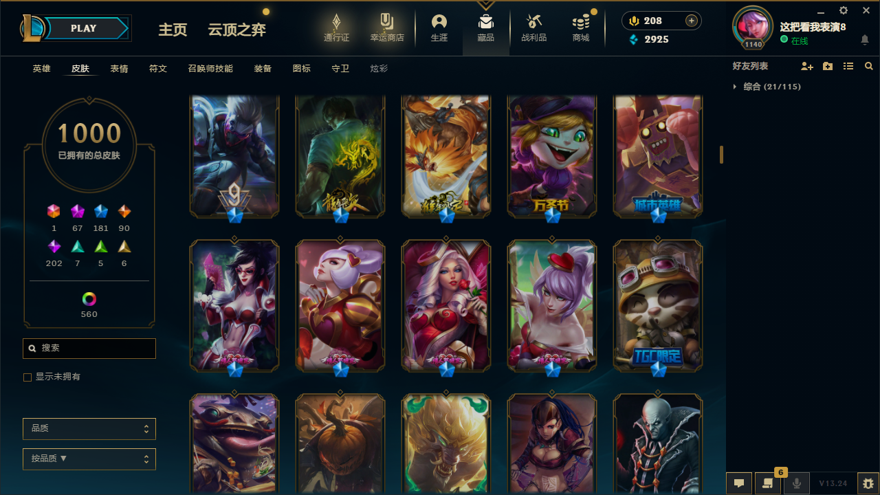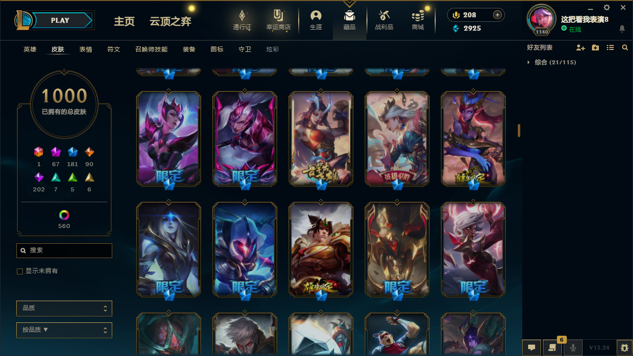 【hy】2000丨原皮1047炫彩800丨龙虾龙刀丨臻彩神龙瞎丨KDA套丨鼠年套丨IGT1套