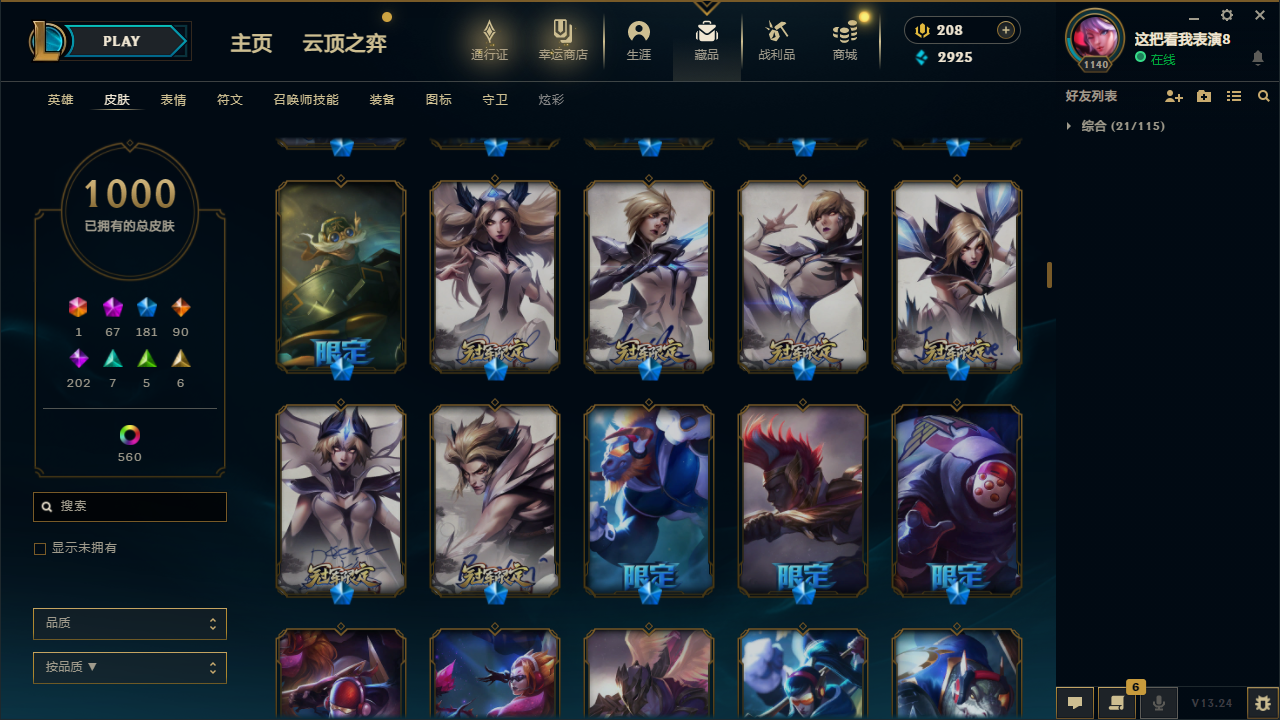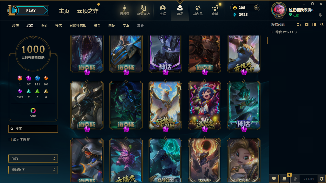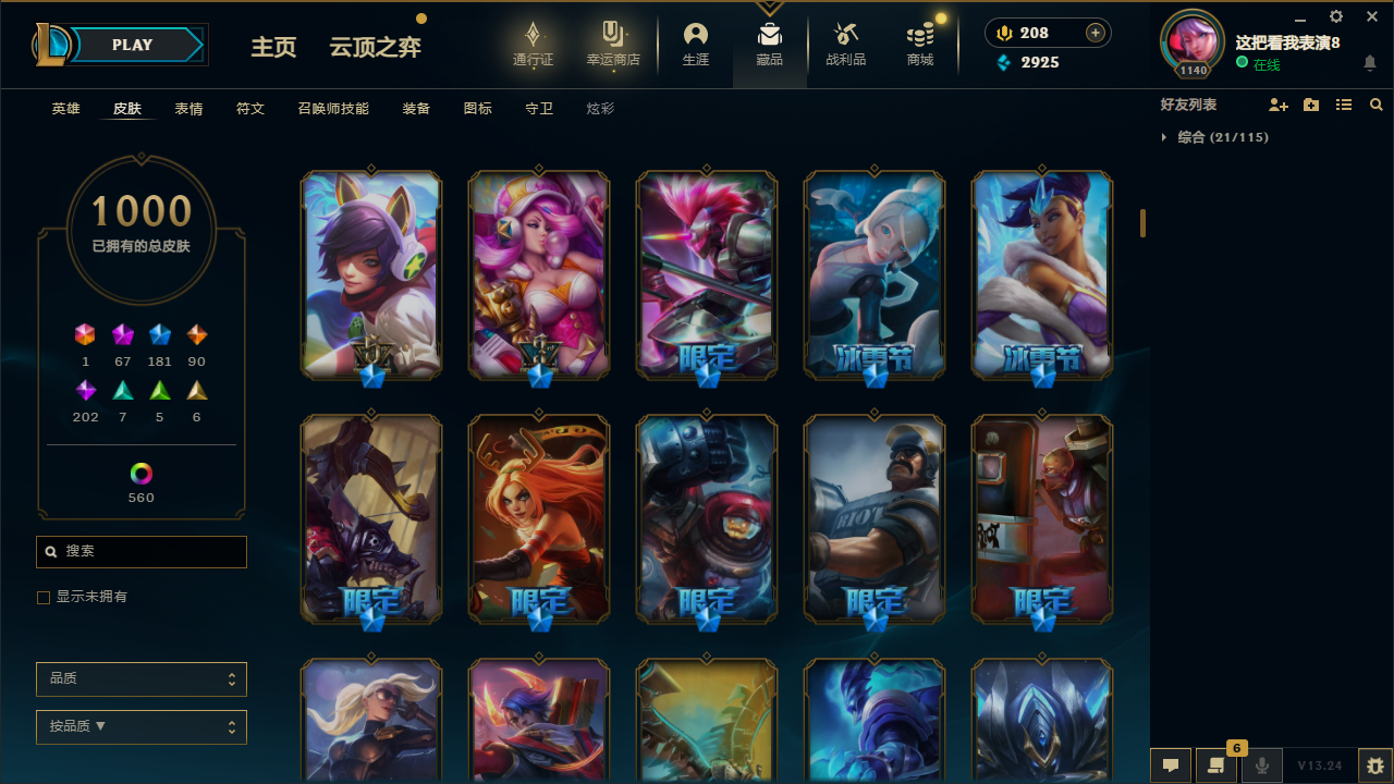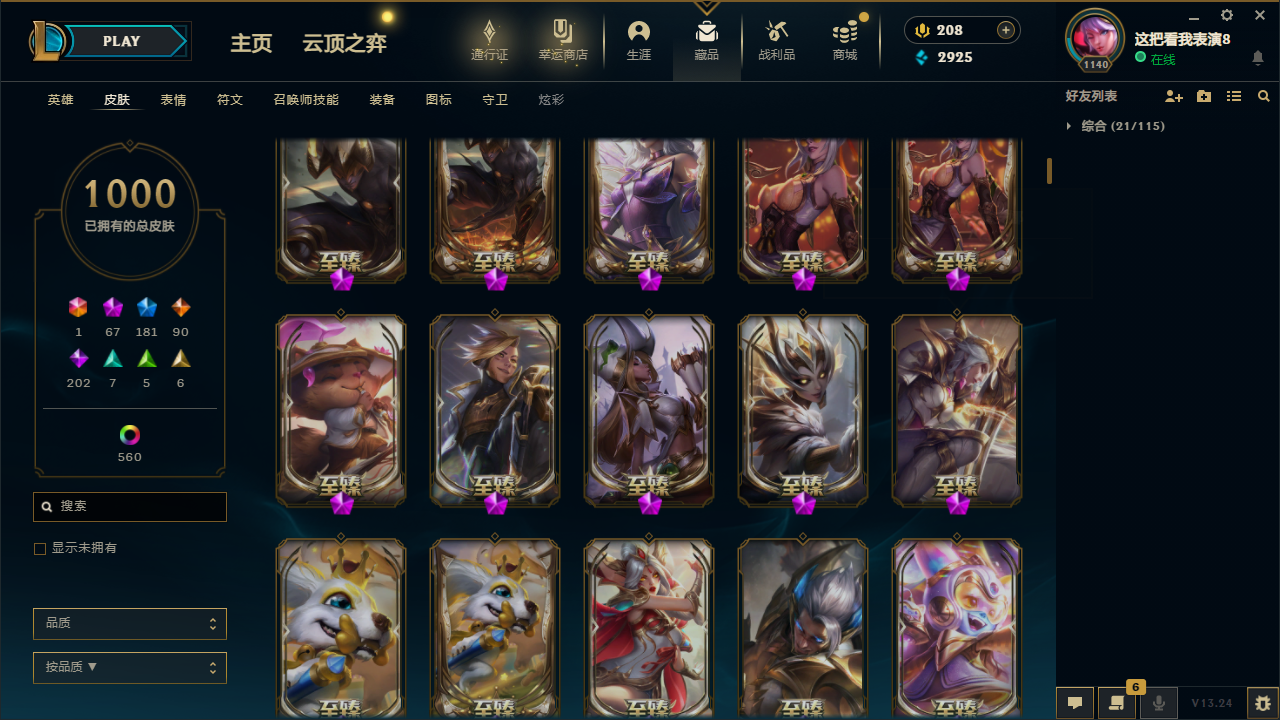 【hy】2000丨原皮1047炫彩800丨龙虾龙刀丨臻彩神龙瞎丨KDA套丨鼠年套丨IGT1套