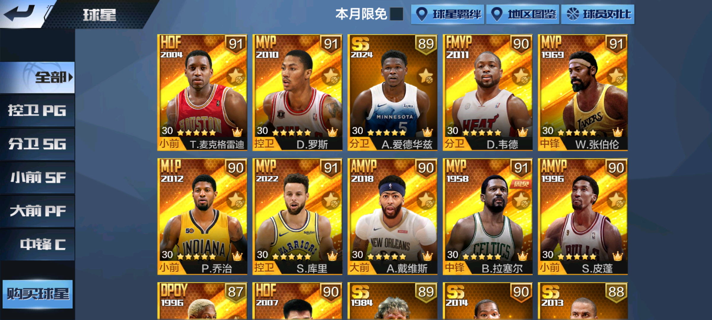【安卓】 38★全是汗啊★挂机罚分力度增大★可排位★天选库里麦迪罗斯新乔治韦德湖帅拉塞尔伯德浓眉罗德曼