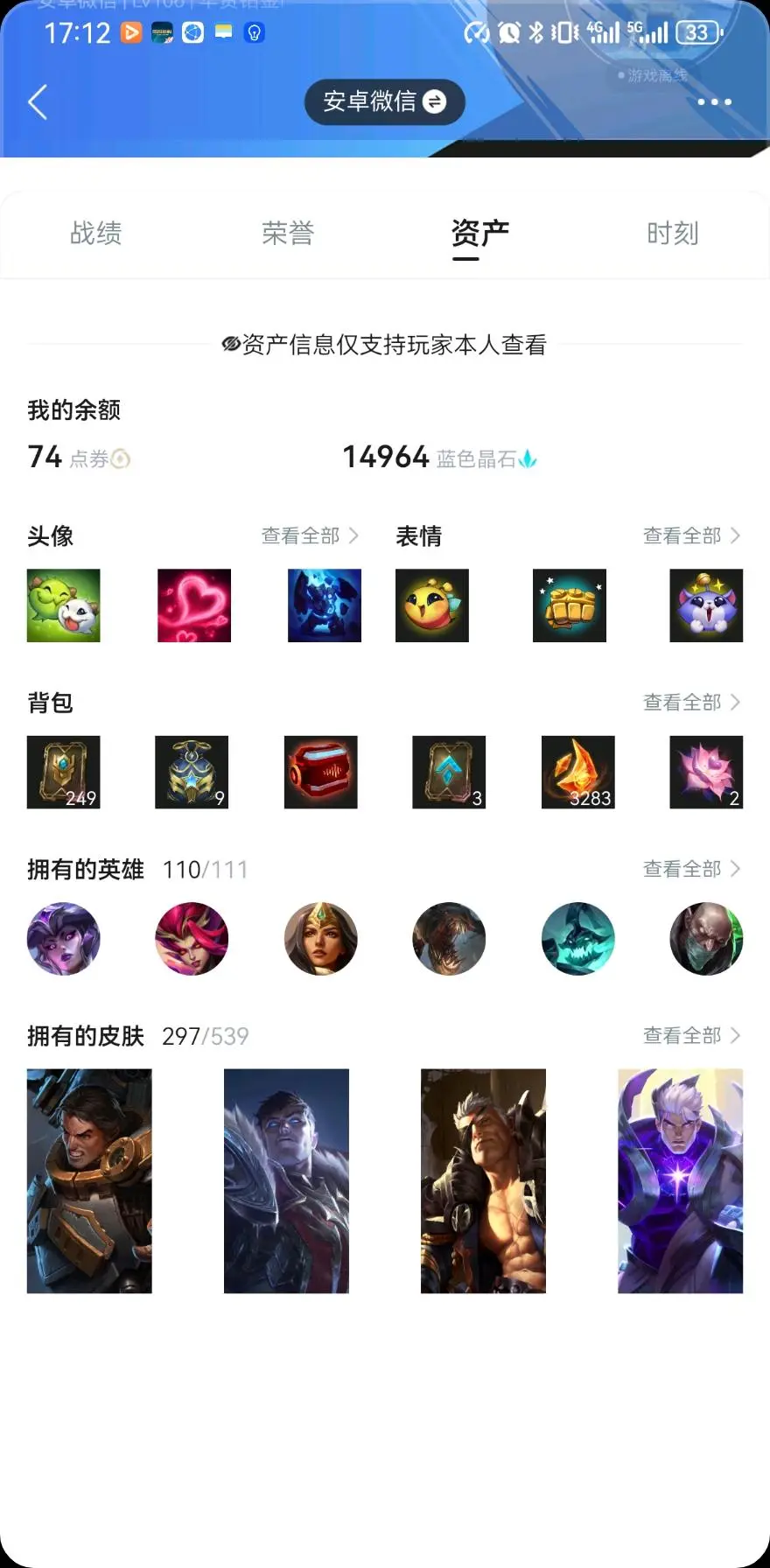 【安卓】 极品号/国际服🌈297皮肤🌴白金学长 神龙尊者 金牌主播 斗魂无双