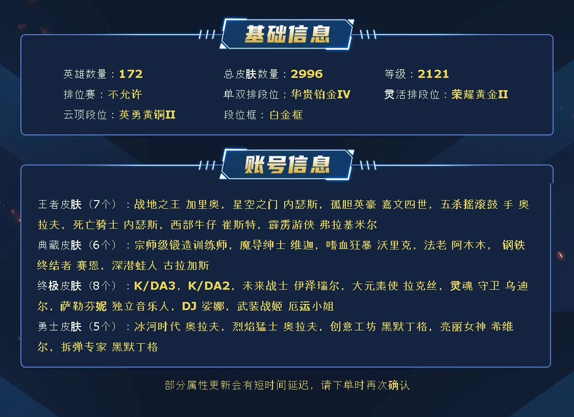 艾欧尼亚果壳✨2992皮丨商城清空丨可排位丨全套冠军皮丨全终极丨106至臻丨甜妹美女号丨玉剑男女刀丨