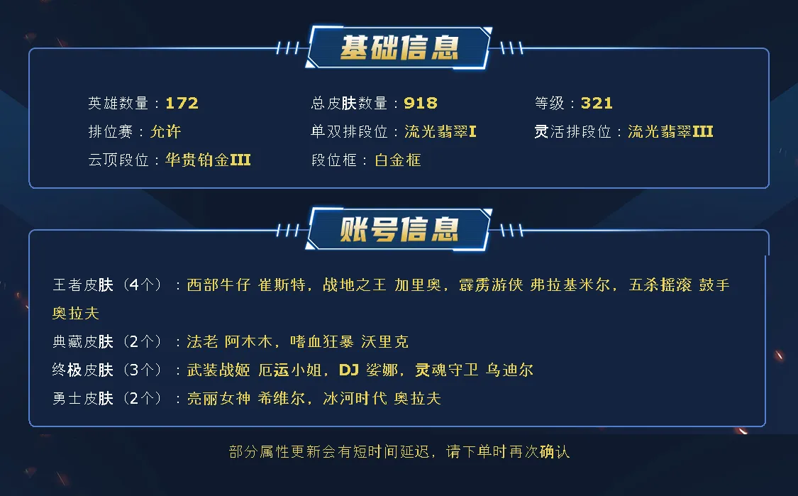 【可排位499原皮肤】至臻婕拉、至臻瑟提、至臻卢锡安、至臻剑魔、至臻瞎子、灰烬杀手塞拉斯、海克斯乌鸦、海克斯鳄鱼、海克斯人马、海克斯龙龟、暗星大虫子、新创战纪希维尔、王国机神玄武盖伦、玉剑传说男刀、星之守护者伊泽瑞尔、狗年狗头、狗年拉克丝、电玩女枪、电玩锐雯、司马懿仲达、花木兰、源计划铁男、源计划鳄鱼、光明哨兵男枪、神龙尊者圣龙李青、灵魂莲华阿狸、魅惑女巫辛德拉、养蜂人、EDG佛耶戈、EDG男枪、西部魔影男刀、黑夜使者凯隐、净雪之月凯隐、破败军团龙女、源计划猪妹、源计划韦鲁斯、咖啡甜心格温、女帝皎月、女帝奇亚娜、灵魂莲华蛇女、猎户星神韦鲁斯、人马星神、屠龙勇士巨魔、战地机甲狗头、抵抗军雷神杰斯、抵抗军绿魔辛吉德、灵魂守卫、武装战姬、DJ、甜心之翎洛、万圣节人马、星之守护者芮尔、泳池派对发条、泳池派对岩雀、御星魔矢、暗星锤石、奥德赛凯隐、黑夜亚索、黎明锐雯、律政大亨蒙多、神王诺手、屠龙勇士潘森、未来战士女警、西部魔影卢锡安、西部天使赛娜、星之守护者阿狸、星之守护者霞、源计划派克、源计划薇恩、战斗学院伊泽瑞尔、真实伤害艾克、暗星小丑、黯晶巨鳄、黯晶巨兽、黯晶之眼、奥德赛卡兹克、奥德赛石头人、超级英雄凯南、德玛西亚警官卢锡安、德玛西亚警官盖伦、黑潮皎月、黑潮吸血鬼、柯基库奇、魔女卡蜜尔、魔女妖姬、千纸双子、千纸凤凰、未来战士卢锡安、未来战士慎、武神、西部人马、小恶魔小炮、小蜜蜂提莫、星守辛德拉、腥红之月全套、永恒之森阿狸、宇航员茂凯、玉剑剑姬、源计划阿卡丽、源计划蔚、源计划狼人、源计划刀妹、战斗教授男枪、战斗学院杰斯、真实伤害奇亚娜