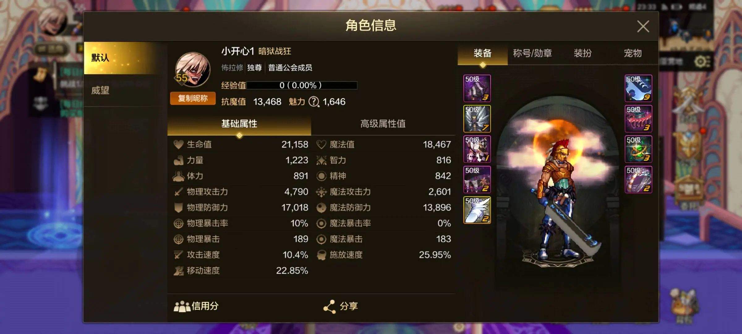 【安卓】 55级角色。角色已转职快速体验,单挑。