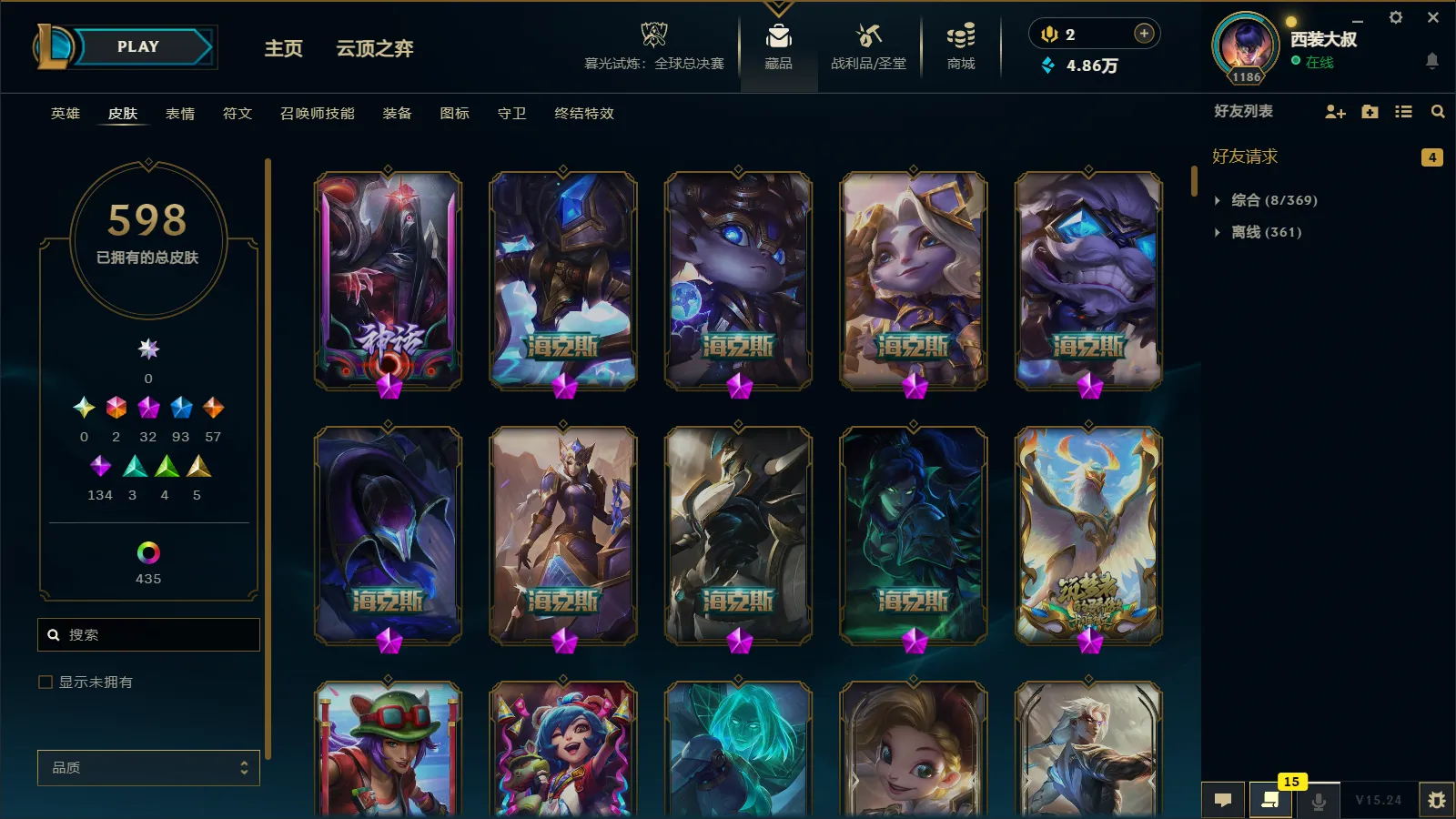 【联盟五区】1101皮丨32神话11臻彩丨神话幻想烬 至臻永恩 DRX剑魔 丨多新皮