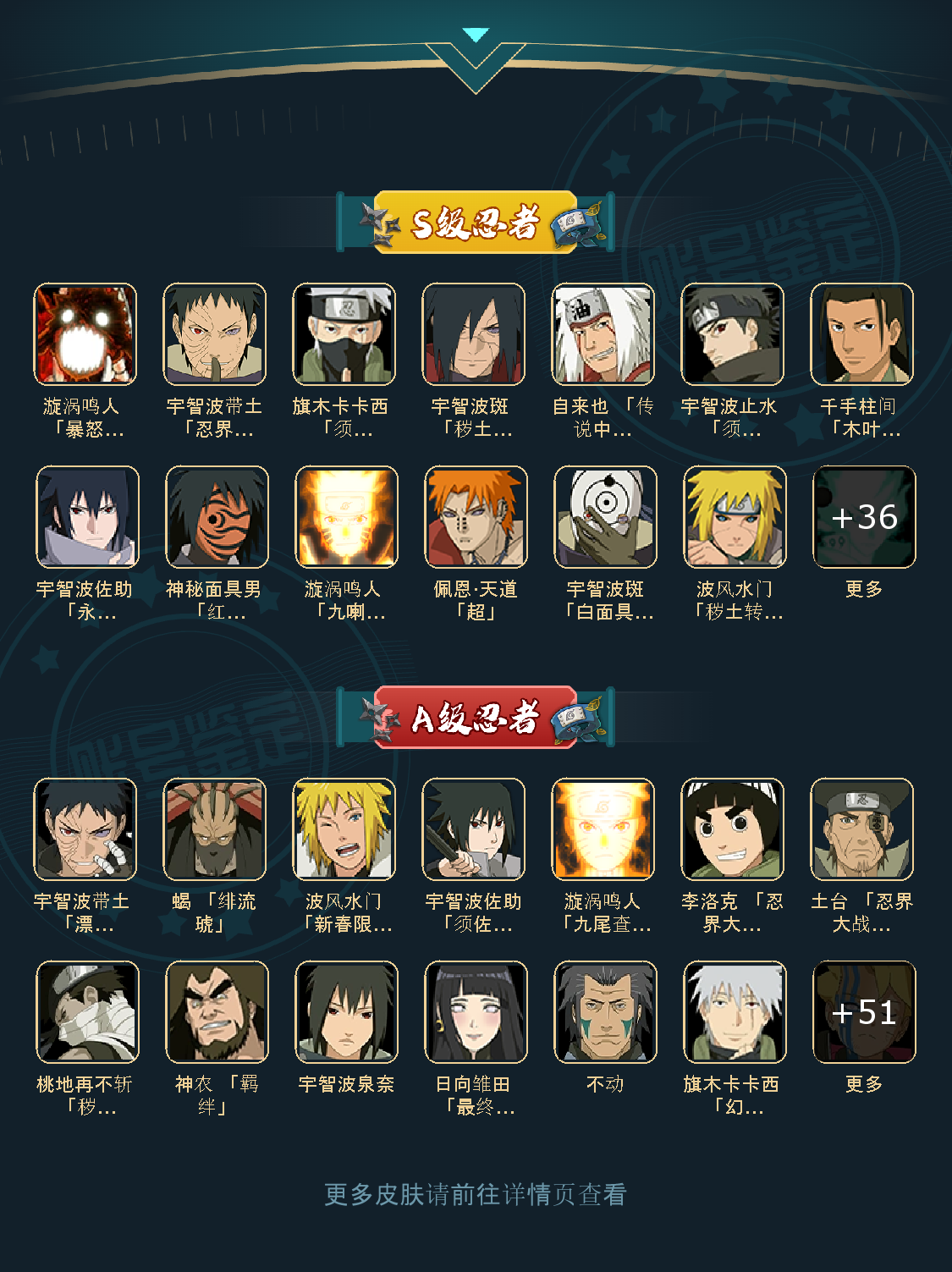 45S 57A 303忍者 蝎 「绯流琥」/波风水门「新春限定」/神秘面具男 「红夜之刃」/宇智波斑 「秽土转生·解」/波风水门「秽土转生」/千手柱间 「木叶创立」/宇智波止水 「须佐能乎」/漩涡鸣人 「九喇嘛连结」/宇智波斑「白面具」/艾 「忍界大战」/宇智波带土「忍界大战」/宇智波佐助 「永恒万花筒」/佩恩·天道「超」/旗木卡卡西 「须佐能乎」