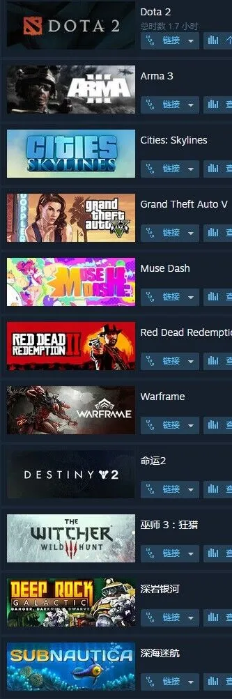荒野大镖客2、GTAV、武装突袭3、城市天际线、苗撕快跑、巫师3、深岩银河、深海迷航