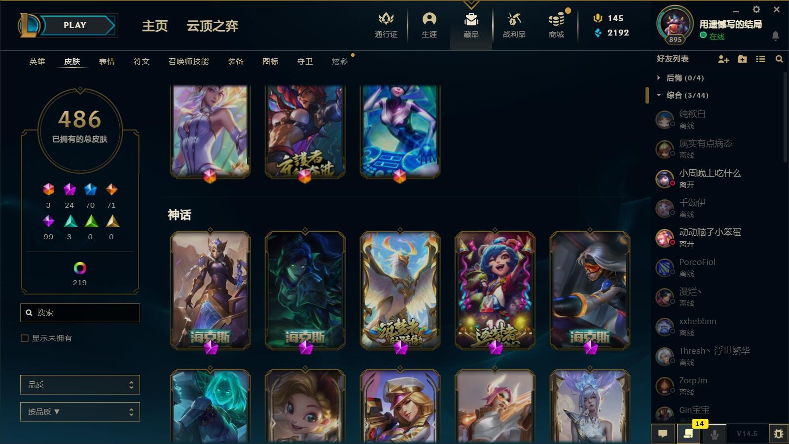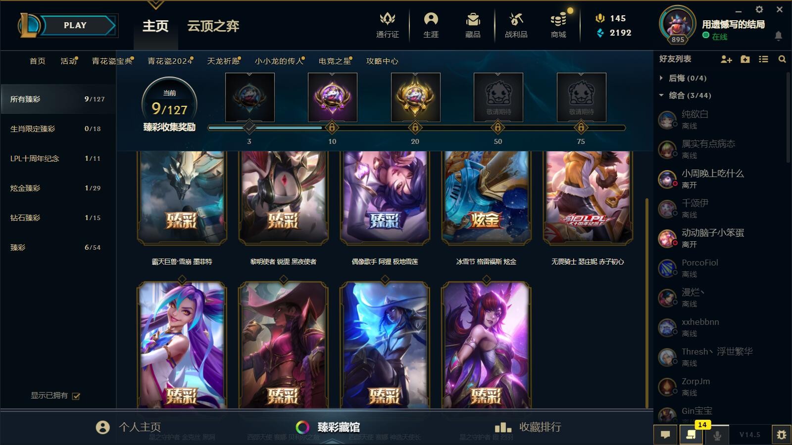 830皮丨24神话9臻彩丨至臻永恩 新阿卡丽 金卡莎 斗魂觉醒莎弥拉