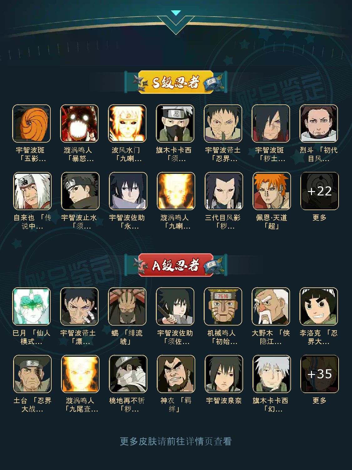 21S 忍战雷影 秽土解斑 永恒佐助 忍战带土 仙人兜 忍战樱 死门凯 秽土鼬 秽土斑 桀骜阿斯玛 百战水门