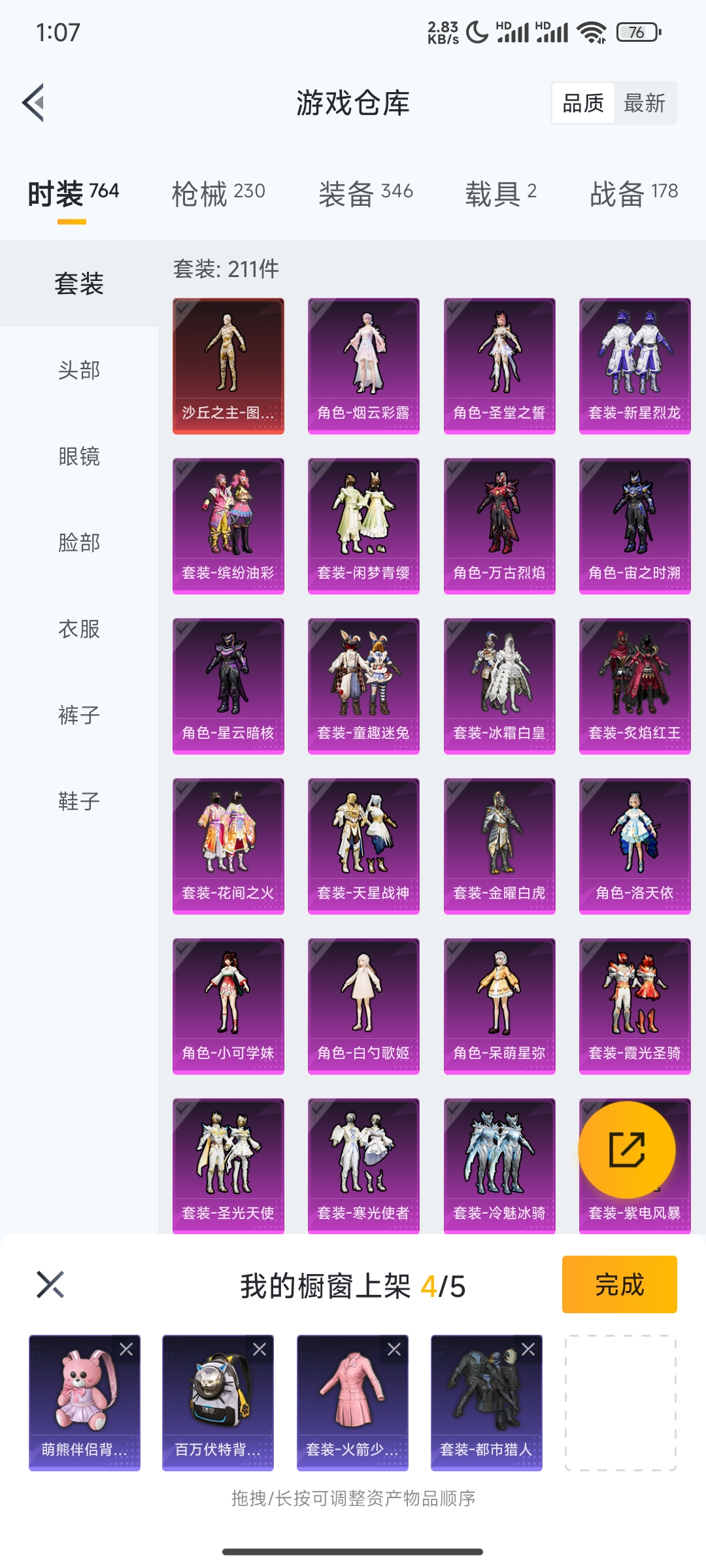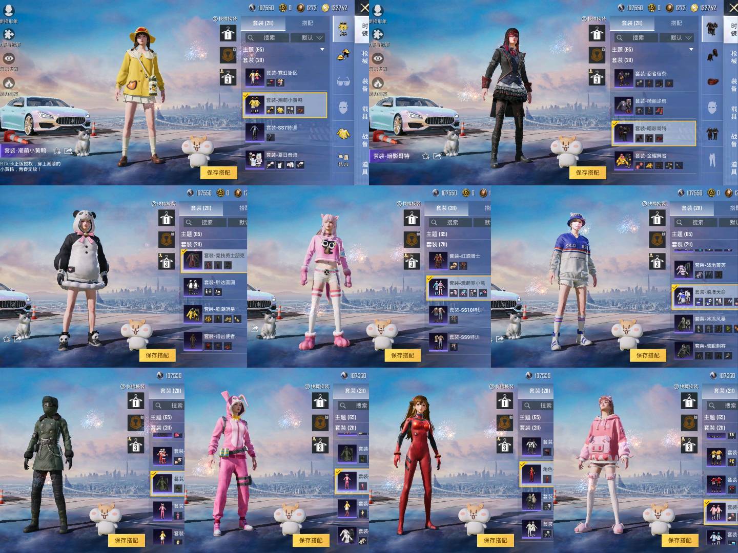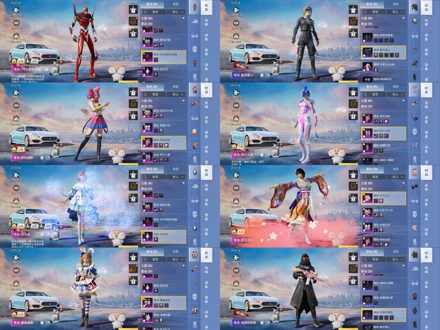 33粉,2载具,211套装,M249-彩虹甜喵/M416-心之恋语/M24-暗星紫秘/SCAR-L-万古烈焰/P90-沙丘之主/AKM-梦之光华/合金龙骨(绿)/玛莎拉蒂Quattroporte幻星粉/