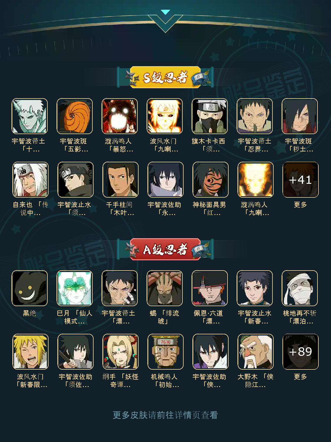 51S 97A 400忍者 宇智波止水「新春限定」/桃地再不斩「漂泊武士」/蝎 「绯流琥」/佩恩·六道 「漂泊浪客」/波风水门「新春限定」/宇智波带土 「漂泊浪客」/神秘面具男 「红夜之刃」/宇智波斑 「秽土转生·解」/自来也 「传说中的三忍」/波风水门「秽土转生」/千手柱间 「木叶创立」/宇智波止水 「须佐能乎」/漩涡鸣人 「九喇嘛连结」/漩涡鸣人 「暴怒·第六尾」/宇智波斑「白面具」/宇智波带土「忍界大战」/宇智波佐助 「永恒万花筒」/佩恩·天道「超」/旗木卡卡西 「须佐能乎」/波风水门 「九喇嘛连结」