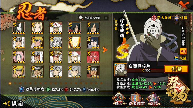 须佐卡卡西、绯流琥蝎、忍战艾🥇47S🥇54A🥇2700W战力🥇永恒佐助🥇忍战带土🥇白面具🥇死门凯🥇团本利器