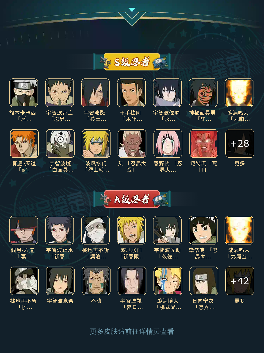 【安卓】 40S 大蛇丸波风水门九喇嘛鸣人永恒万花筒佐助忍战樱普通纲手百豪纲手死门凯