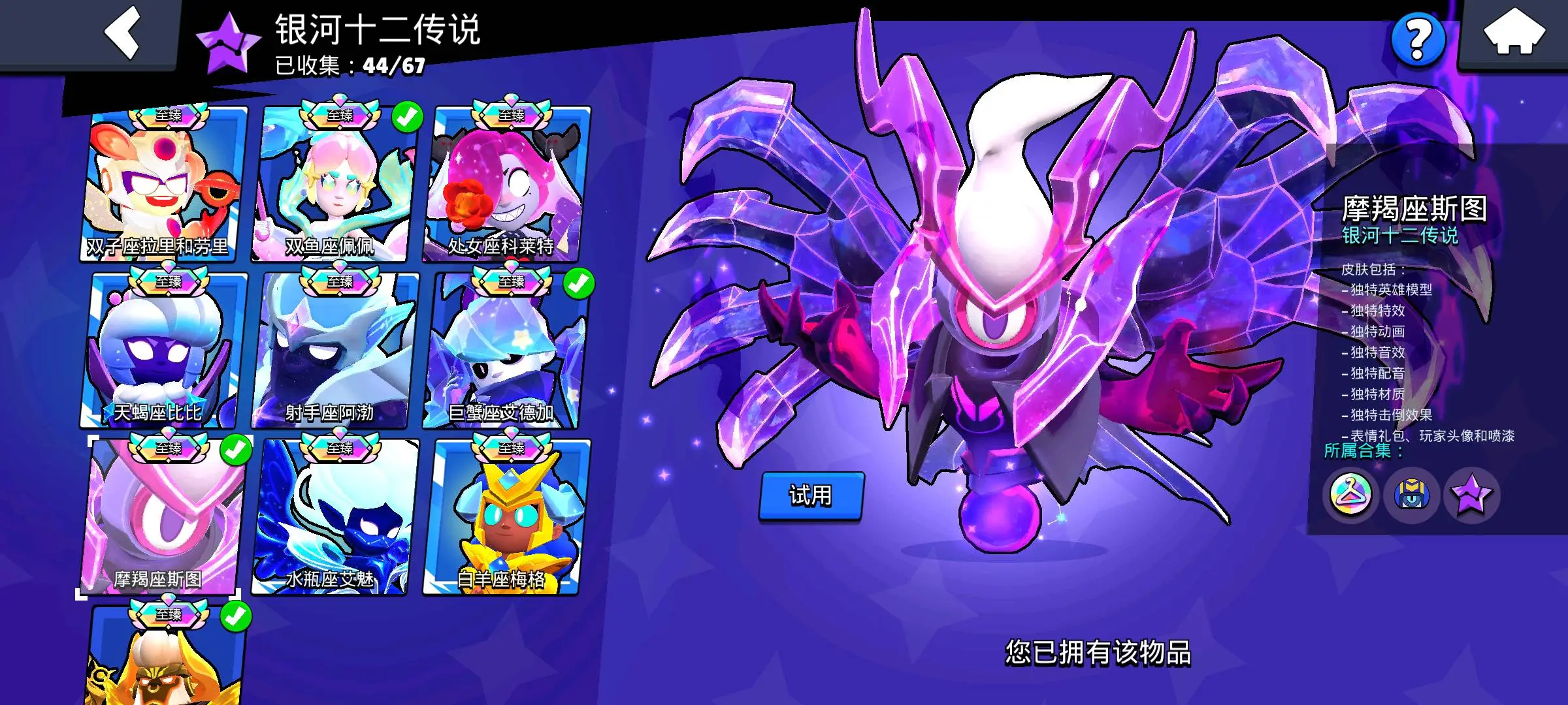 【安卓】 530+皮肤🔥流星声望🔥魔女雪梨🔥3翅膀🔥4星座🔥61个彩牌🔥99英雄满级🔥8万杯