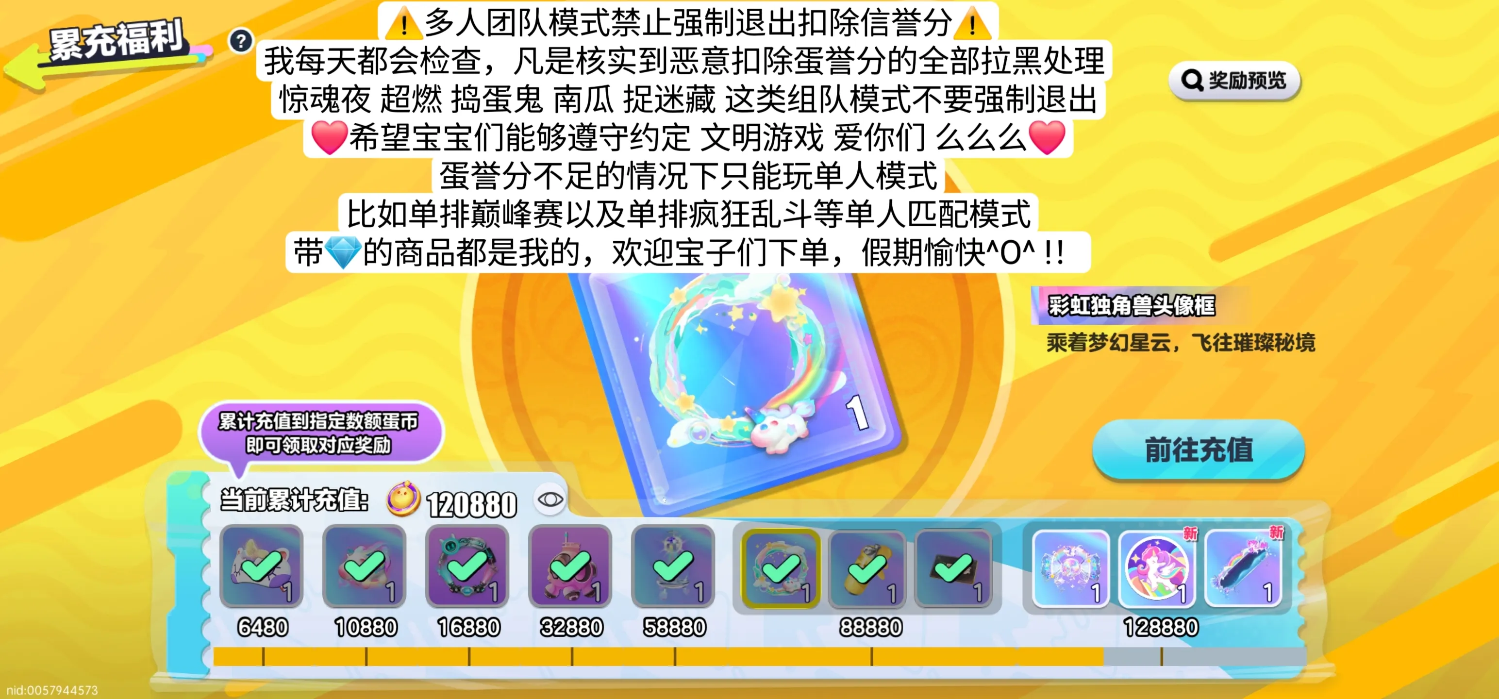 蛋仔派对,黎月园长,蔷薇红皇后,断罪骑士-极,圣翼天使-澄,黎月园长,暗匿小丑,蔷薇红皇后,音爆曜星,星际莱克,醒狮蛋宝,艾瑞和巴蒂,欢宴园长,蔷薇白皇后,玉龙云岫,断罪骑士-岚,断罪骑士-烈,猎罪修罗-樱,猎罪修罗-溟,圣翼天使-恋,圣翼天使-堕,电竞模式,透明蓝帽,甜酷阿莉,织梦精灵,冰霜骑士,水母莱莱,小蓝帽,清姬樱子,深海灏克,胆小鬼,木偶波露,蟹船长,黑森麦克,月影摇摇兔、仙舞飘飘鹿、透明蓝帽、机甲、浪花戴露姗、小羊、兔兔车、白皇后、懒羊羊、鲨莉娃、砂糖熊王子,千山绘灵青岚、人鱼歌姬赛然、飞天舞姬连若、断罪骑士极、浪花黛露珊、鎏金奥莉安娜、暗夜皇女德希拉、暗夜皇子德古拉、断罪骑士烈、霓裳天姬莲若、焰心龙女芙瑞、曙光龙女芙瑞、烛光精灵夜清、雾隐精灵夜清、北辰斗星破军、城隍女君天心、佣兵,杰克,园丁,橙留香,梅海海,铃兰三月兔,焰心龙女芙瑞,曙光龙女芙瑞,翠羽之屏,极真阿莉,无敌凤凰,超级凤凰,许愿币,闪电护目镜、单字ID,单字,彩虹币,赵云,至臻滚动特效,雪影极光羽,鱼龙舞,桃花春晓,王者荣耀,和平精英,第五人格,元梦之星,火影忍者,手游Cf,穿越火线,无畏契约,三角洲行动,使命召唤手游,超自然行动组,逃出惊魂夜,特价,手雀