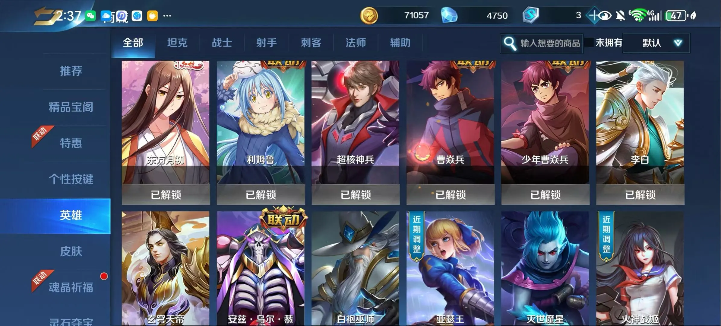 【安卓】 编号119/官服版本!贵族8有280皮镇魂街联动大小曹夏玲(有皮肤)安兹乌尔恭,利姆露等联动英雄皮肤