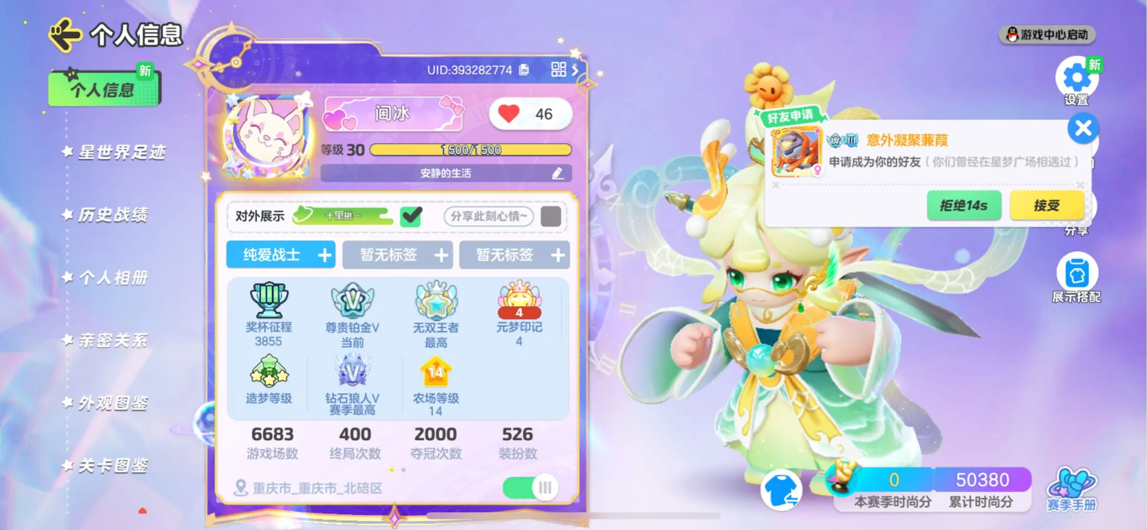 - 不能加好友: 是