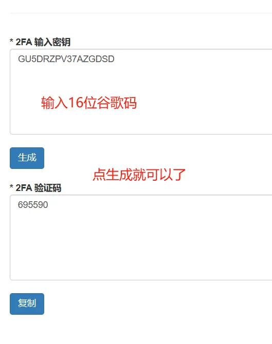 3. 在网址中输入16位谷歌码:O3YSA5QTMSI67Y4H