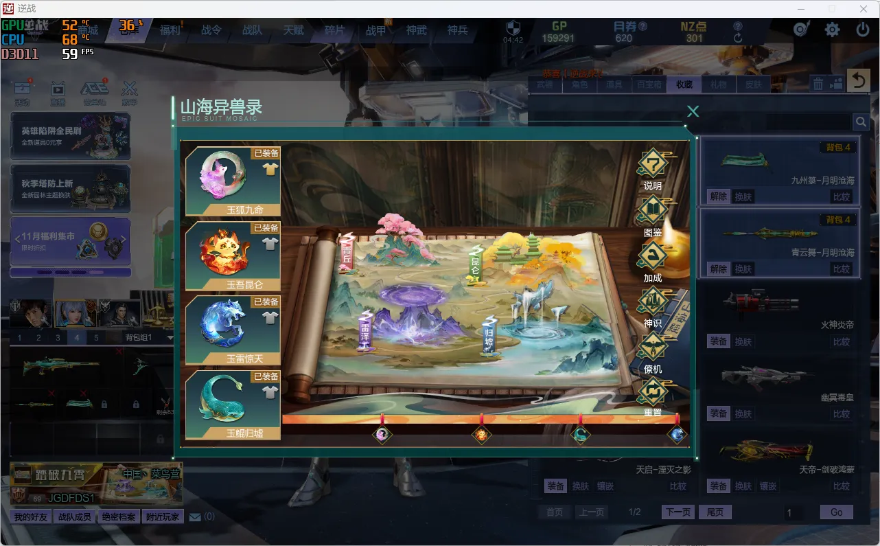 山海套四玉佩金福萌萌兽\天帝套\天启左轮\天王\英雄游侠\暗夜头盔