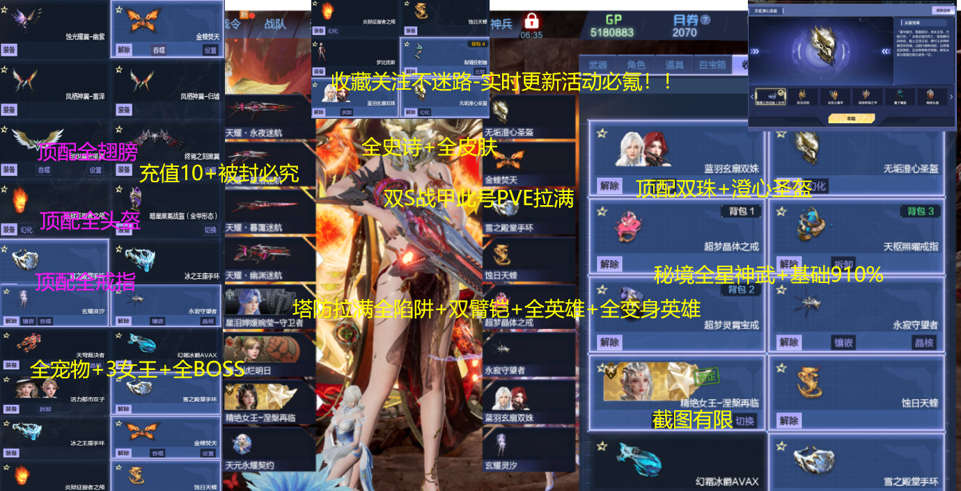 双株澄心永寂丨秘境910神武45星3女王3超梦丨塔防拉满焚霄初号机3龙王2臂铠全史诗头盔翅膀战甲焚天