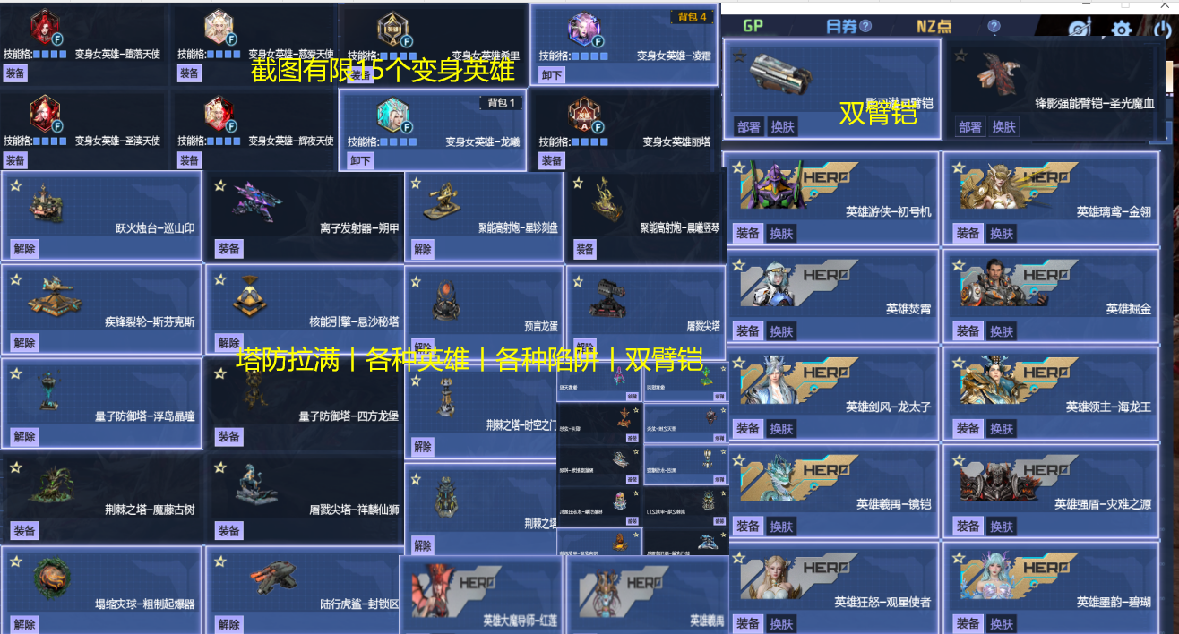 2025.3.25新增:黑冕头盔,火焰头盔,塔防全臂铠,全陷阱,全皮肤,15狗熊