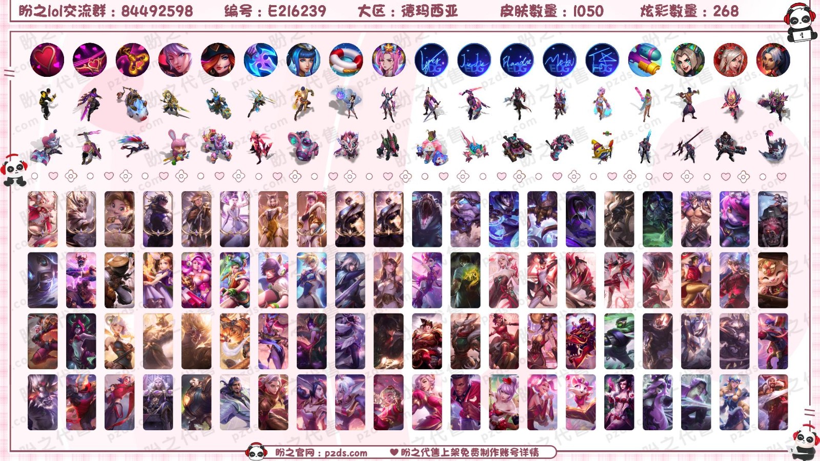 1068原皮黑龙虾粉色萝莉战熊骑士EDG套太空律动套灵魂莲华套云顶神话菜大师