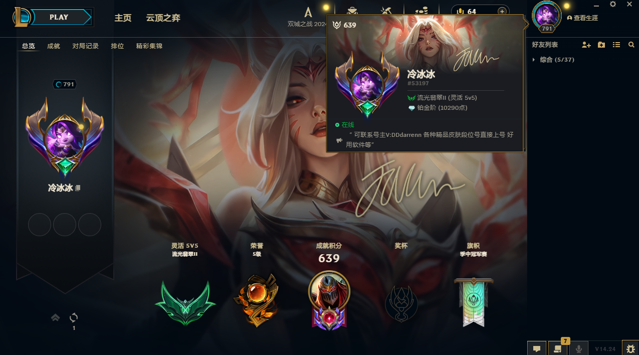 胜利女神 瑟庄妮 单排/双排 华贵铂金