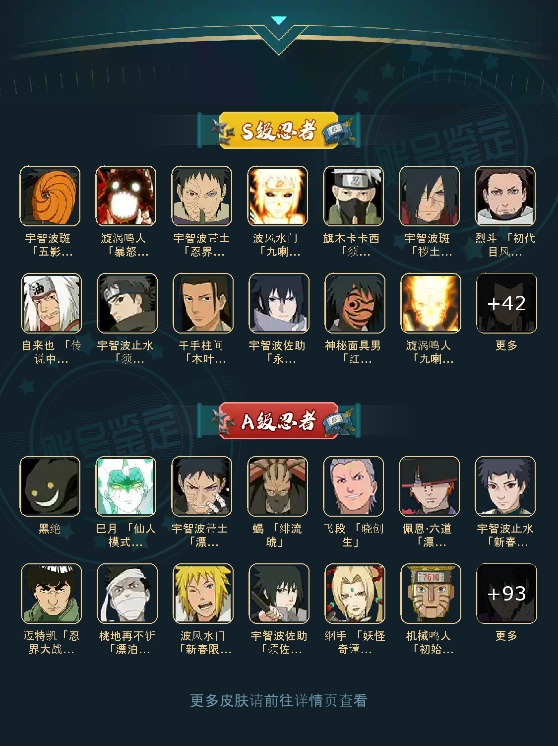50S 96A 392忍者巳月「仙人模式」波风水门「九喇嘛连结」宇智波斑「五影会谈」机械鸣人「初始形态」宇智波佐助「侠隐江湖」大野木「侠隐江湖」最终章场景 雨忍村场景 全通灵
