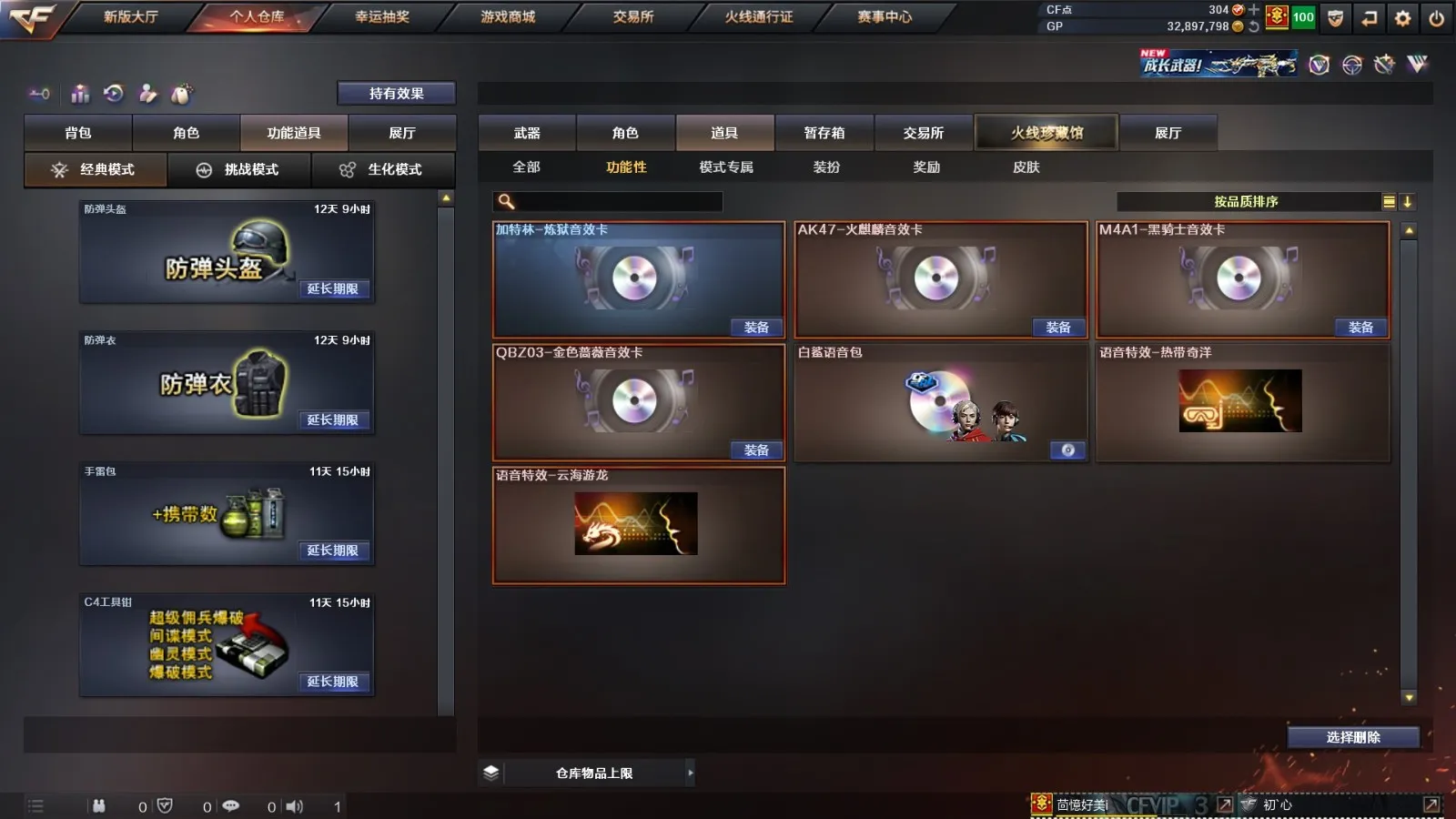 【重要音效卡】加特林-炼狱音效卡/M4A1-黑骑士音效卡/QBZ03-金色蔷薇音效卡/AK47-火麒麟音效卡