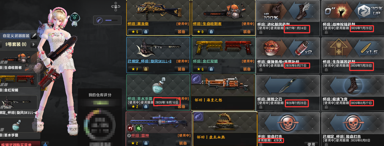3.怀旧套!已去黑雾!赛季12(为期限),15到21配件武器全满,强化武器全满!
